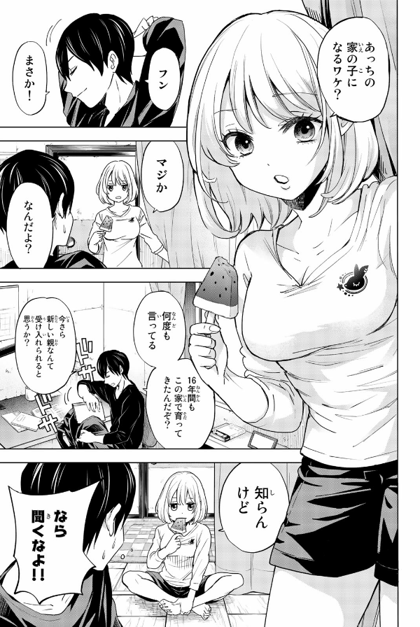 超お嬢様JK・天野エリカと定食屋の息子・海野凪。実はこの二人、なんと赤ちゃんの頃に取り違えられた子ども同士。しかも、実の子も育ての子も可愛い両親×2により、なんと許嫁関係&同居生活を送るハメになってしまう! 運命の悪戯に翻弄される二人の日常、その行方は──!?
