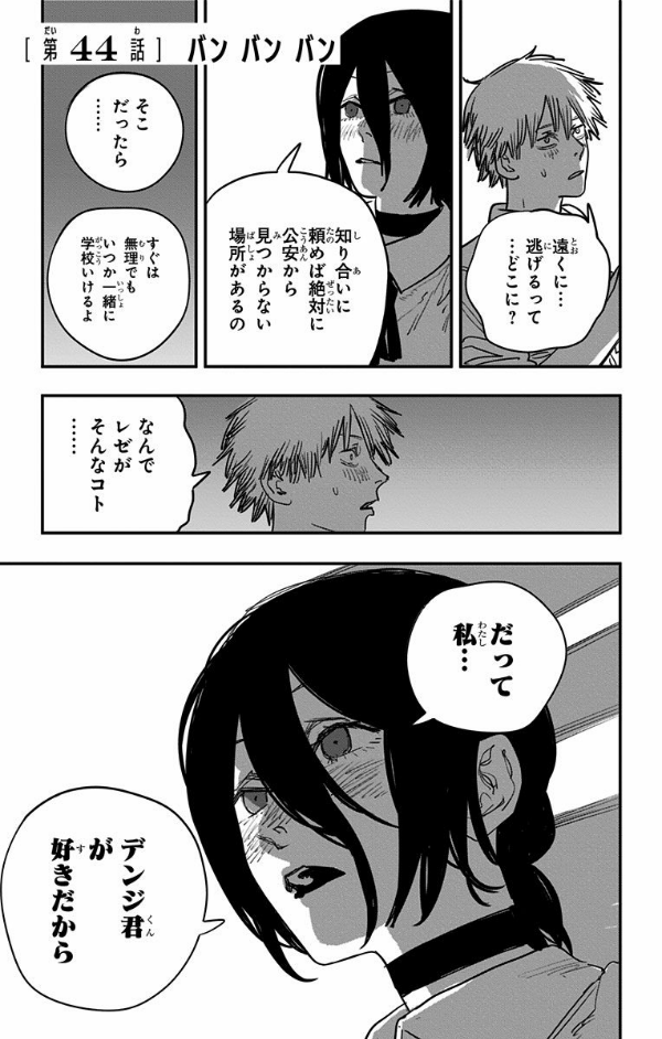 「遠くに逃げよう」…レゼの思いがけない言葉に心揺れるデンジの、純情の行方は──。そんな甘いひと時から急転直下、吹き荒れる爆殺の嵐! 恋も欲望も、人間も悪魔も全てを巻き込むド派手な血戦で、デンジとレゼは何を確かめ合う!?