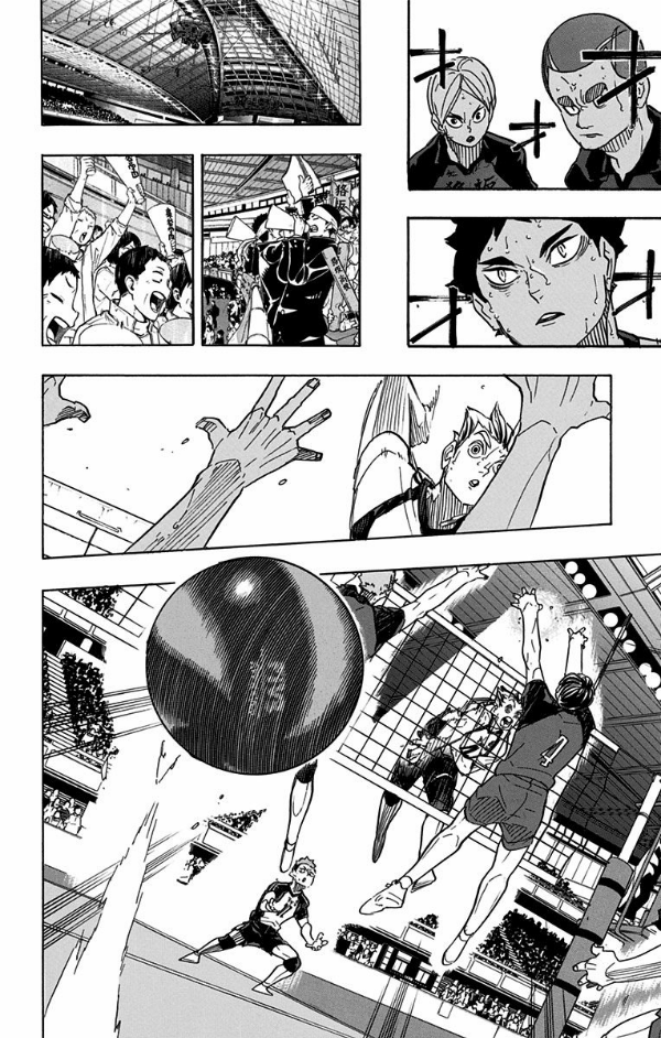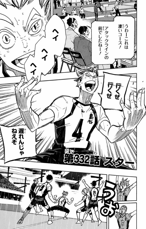 木兎と桐生、全国屈指のエース二人が春高準々決勝で大激突! 勢いに乗り絶好調の木兎だが、ミスを誘発されて不調の赤葦は、ベンチに下げられてしまう!! 一方試合を目前に控えた日向は、思わぬ人物と対面し!?