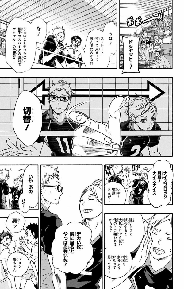 青葉城西との3回戦。苦戦する烏野は影山に代わり菅原を投入。誰よりもコートの外からチームを見続けた男の采配が、徐々に流れを引き寄せ始める! しかし、敵エース及川のサーブには攻略の糸口が見つからず!?