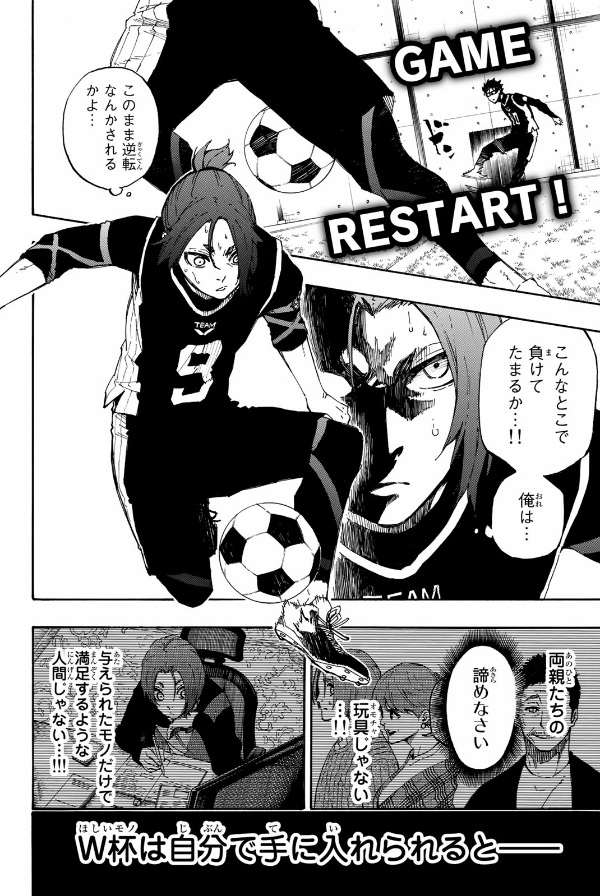 ブルーロック 2 - BURUU ROKKU 2018年、W杯。日本代表は無残に散った。今大会もベスト16止まり…。アジアでは強豪? 組織力は世界レベル? そんなことは、もう聞き飽きた! 課題は、絶対的な「エースストライカー」の不在。悲願“W杯優勝”のために、ゴールに飢え、勝利に渇き、試合を一変させる革新的な“1人”を作るべく、日本フットボール連合は300人のユース年代の選手達を招集する。まだ無名の高校2年生・潔世一は、己のエゴを以って299人を蹴落とし、最強のエースストライカーの道を駆け上れるか!? 登場人物、全員“俺様”! 史上最もイカれたエゴイストFWサッカー漫画、ここに開幕!! 国民とマスコミの過熱する批判の目と、日本が誇る天才MF・糸師 冴の冷たい闘志の視線を受け、いよいよ“青い監獄”のトレーニングが幕を開ける。5チーム中2チームが勝ち残る総当たりリーグ戦で、潔達チームZは、全員FWで行う初めての試合に大苦戦! 勝ち上がるために必要なのは自分だけの“武器”!? エゴを開花させる“武器”を見つけ、蹴落とせ自分以外! なりてぇだろ!? 世界一!!