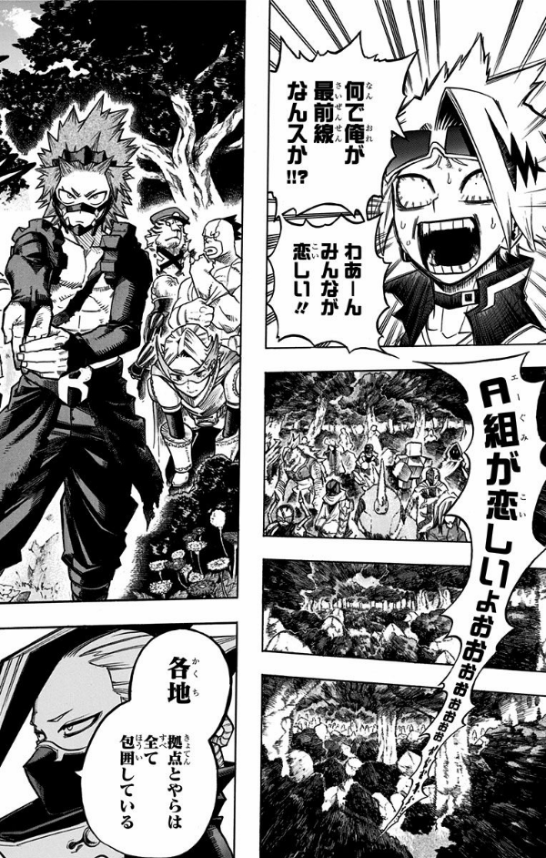 ついにヒーローによる一斉襲撃作戦が始まる。潜入から時間は掛かったが、全てはこの瞬間、確実に「超常解放戦線」を制圧するんだ! 子どもの頃から憧れていたヒーローみたいにみんなの為、俺は誰よりも速く飛んでいく! “Plus Ultra”!!