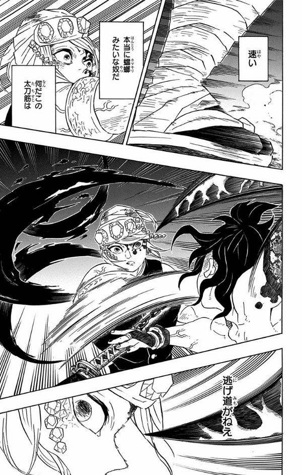 上弦の陸の兄妹鬼、妓夫太郎と堕姫との花街での戦いは熾烈を極める。次第に柱の宇髄と連携がとれる炭治郎たちだが、宇随や伊之助、善逸は鬼の凶刃に倒れてしまう。仲間が倒れた今、炭治郎は二人の鬼を打ち破れるのか!?