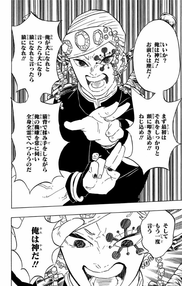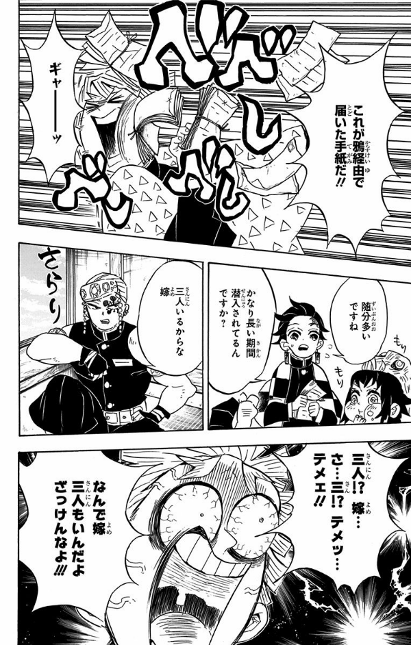 “音柱”宇髄天元と共に鬼の棲む遊郭へ向かった炭治郎たち。そこではくノ一である天元の妻3人が、情報収集中に連絡を絶っていた。調査のため炭治郎たちは女装して潜入するが、鬼の居場所は掴めなかった。そんな中、花魁たちに鬼の魔の手が!! 炭治郎たちは、鬼を見つけられるか!?