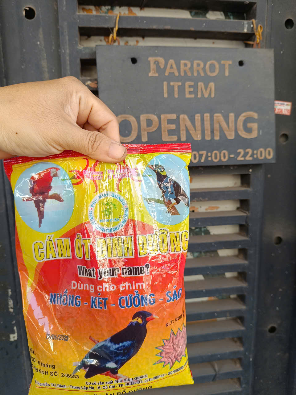 1 bịch cám ớt dinh dưỡng cho nhồng, két, cưỡng, sáo (500Gram) Sản phẩm này là tài sản cá nhân được bán bởi Nhà Bán Hàng Cá Nhân và không thuộc đối tượng phải chịu