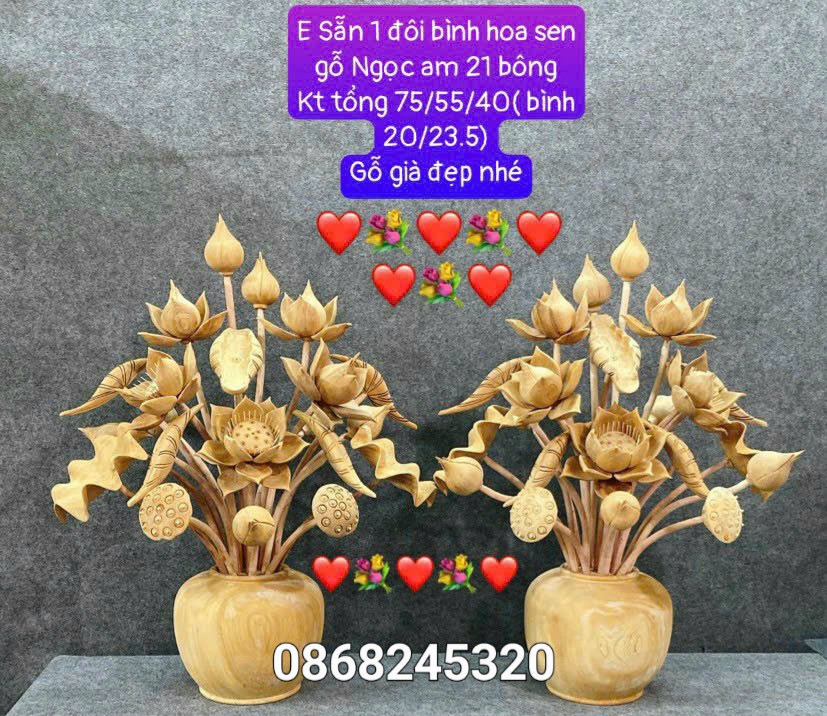 Chỉ với 3.500k sở hữu ngay bình hoa sen gỗ Ngọc am 21 cành thơm nức mũi .