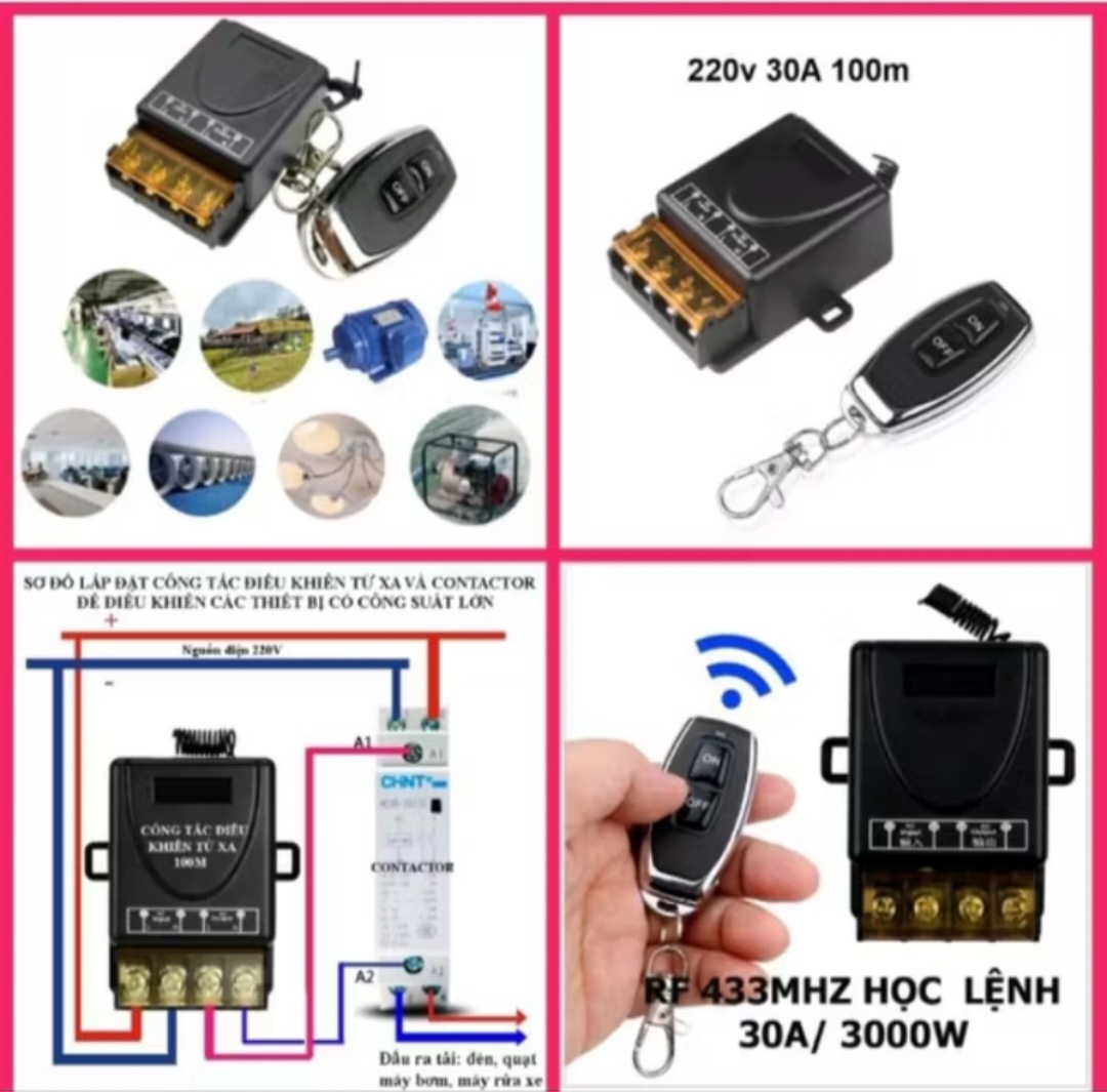 Học lệnh cho công tắc điều khiển từ xa 100m, 30A, 3000W