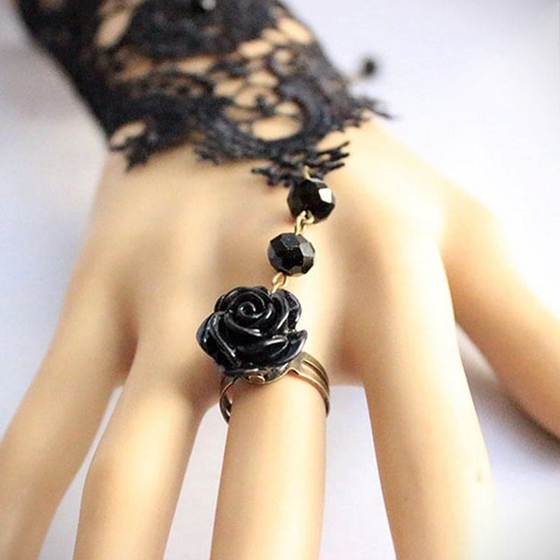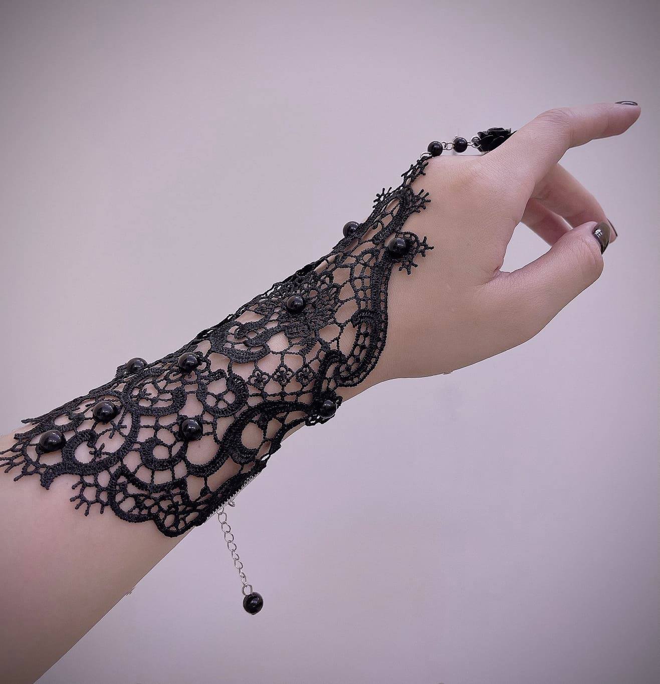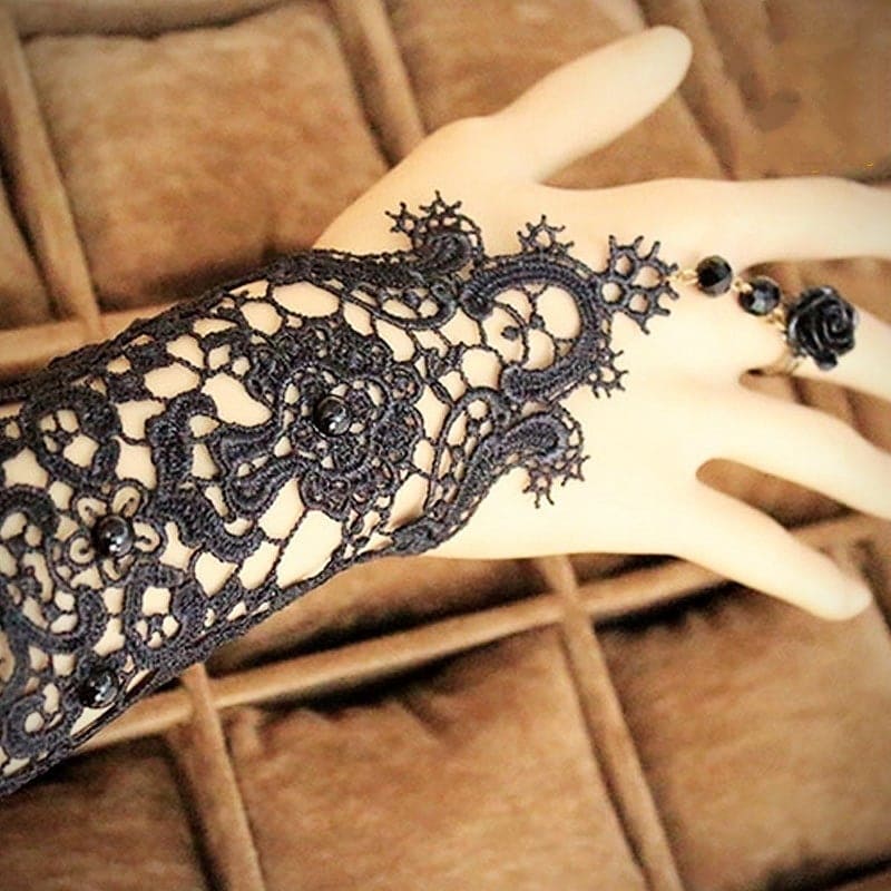 ✨1 chiếc Găng tay chất liệu ren tết cao cấp đính hạt kết hợp nhẫn hoa cho Cô dâu và Dạ hội, đi tiệc, sự kiện MS: 42214