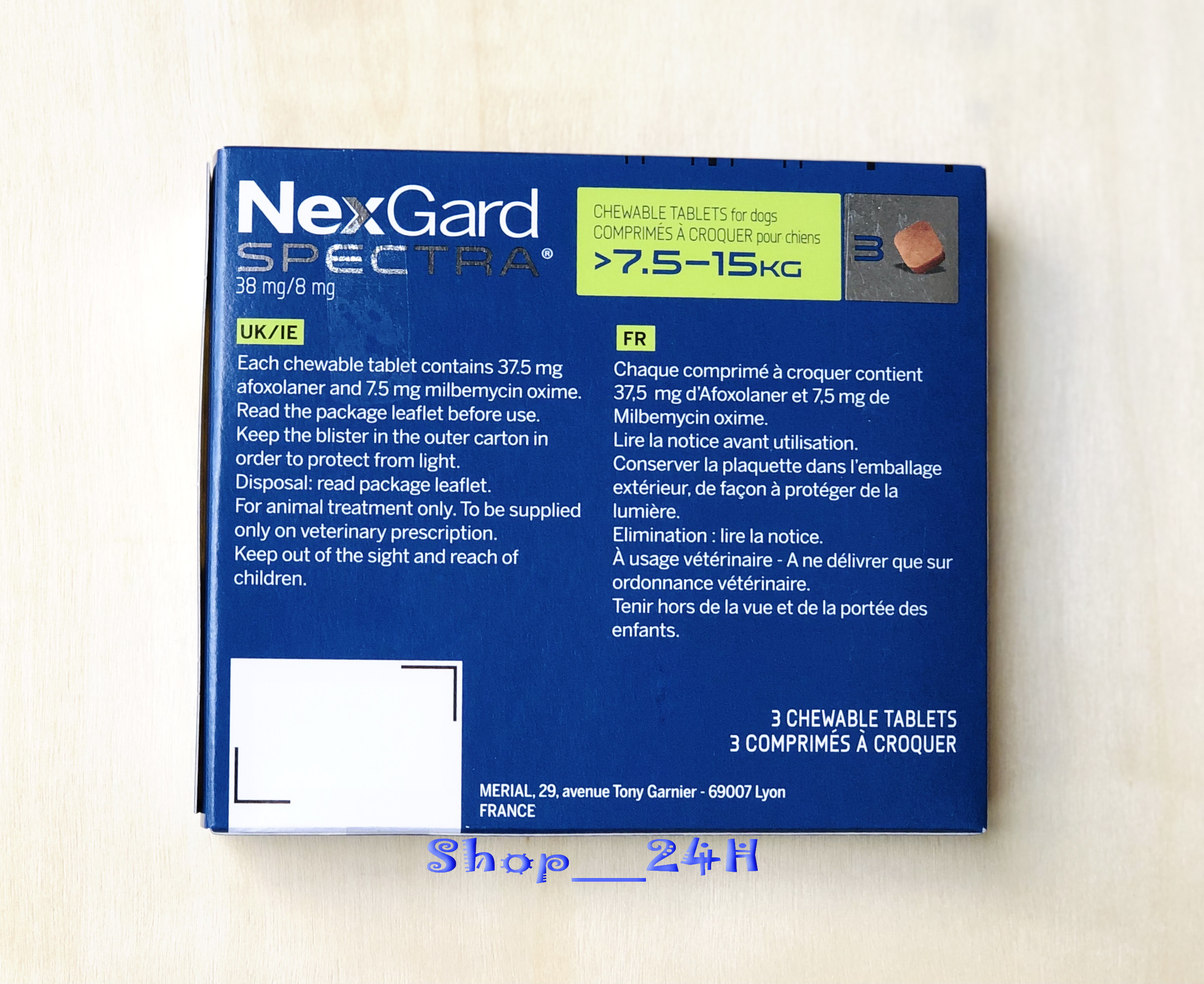 ✨1 hộp NexGard Spectra trị giun, ghẻ, ve rận, viêm da (chó 7,5 - 15kg; hộp 3 viên)