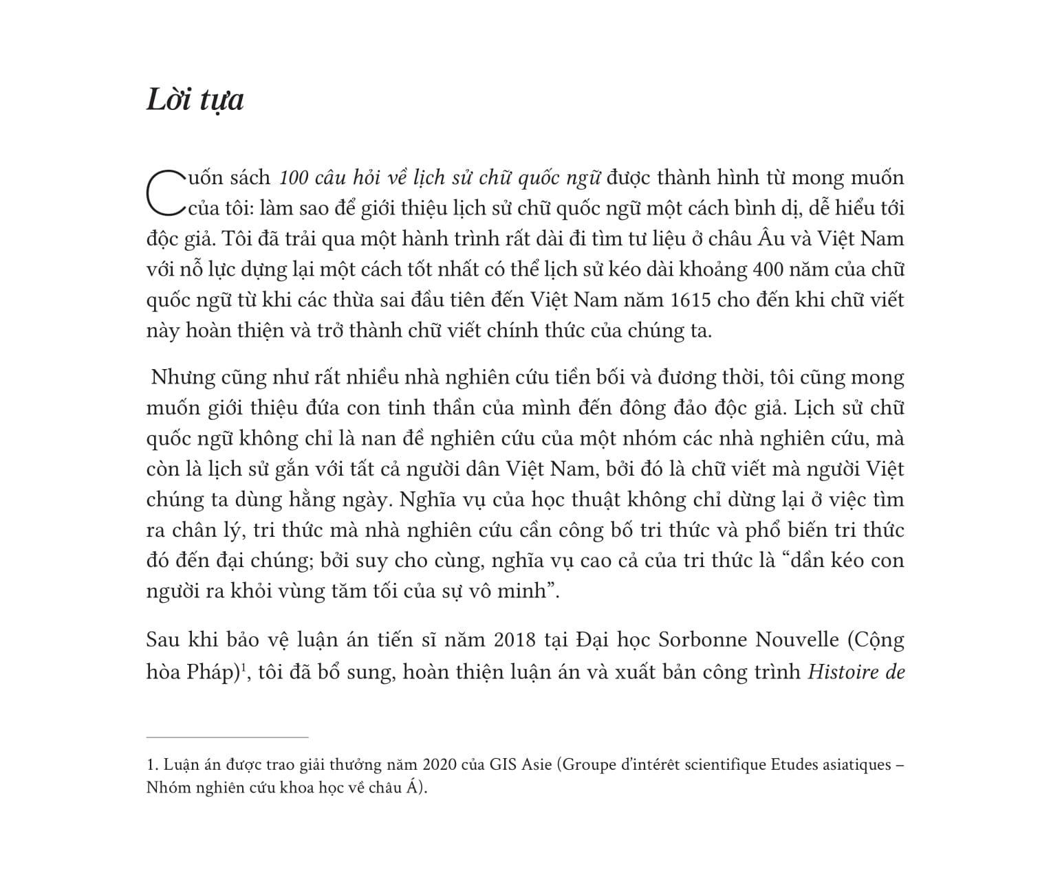 Độc giả cũng có thể tìm thấy trong cuốn sách này những giải thích về logic chính tả của chữ quốc ngữ và cả những biến chuyển lớn lao trong đời sống xã hội, văn hóa - giáo dục…