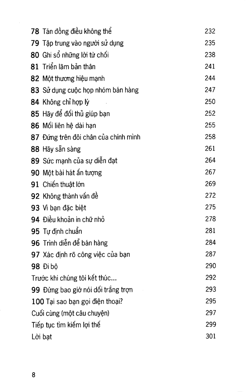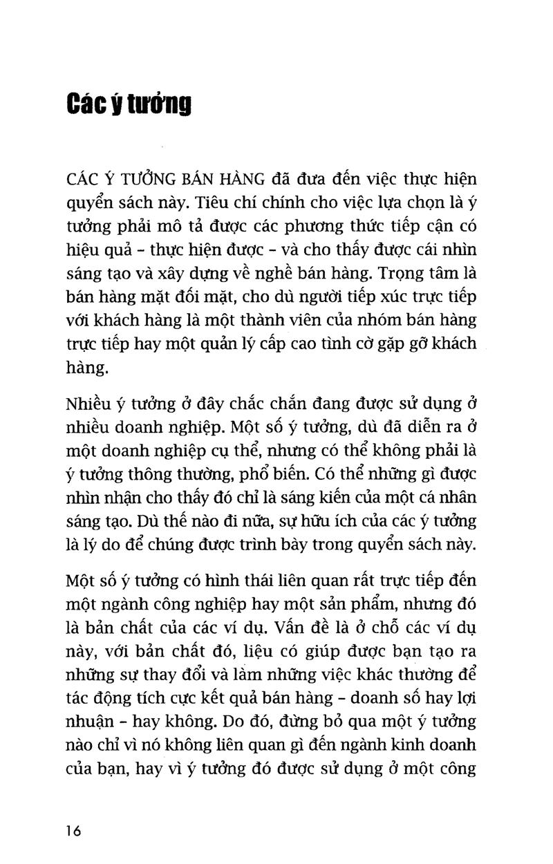 Cuốn sách là sự đúc kết của tác giả trong công việc tư vấn doanh nghiệp, cung cấp cho người đọc nhiều ví dụ từ thực tế làm ăn của những công ty có thật (có nêu danh lẫn ẩn danh) rất dễ để liên tưởng và suy ngẫm. Các ý tưởng trong sách được tác giả chọn lọc theo tiêu chí: phải mô tả được các phương thức tiếp cận có hiệu quả - thực hiện được - và cho thấy được cái nhìn sáng tạo và xây dựng về nghề bán hàng. Trọng tâm là bán hàng mặt đối mặt, cho dù người tiếp xúc trực tiếp với khách hàng là một thành viên của nhóm bán hàng trực tiếp hay một quản lý cấp cao tình cờ gặp gỡ khách hàng.