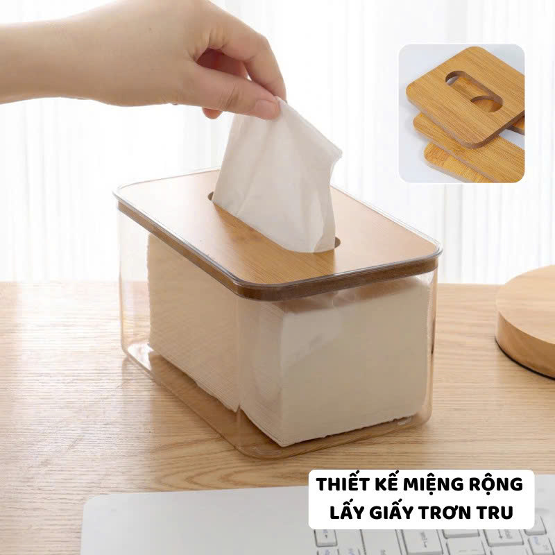 Hộp Đựng Giấy Ăn Khăn Giấy Nhựa MiKa Trong Suốt Nắp Gỗ Tre Tự Nhiên Màu Sắc Kiểu Dáng Phong Cách Bắc Âu