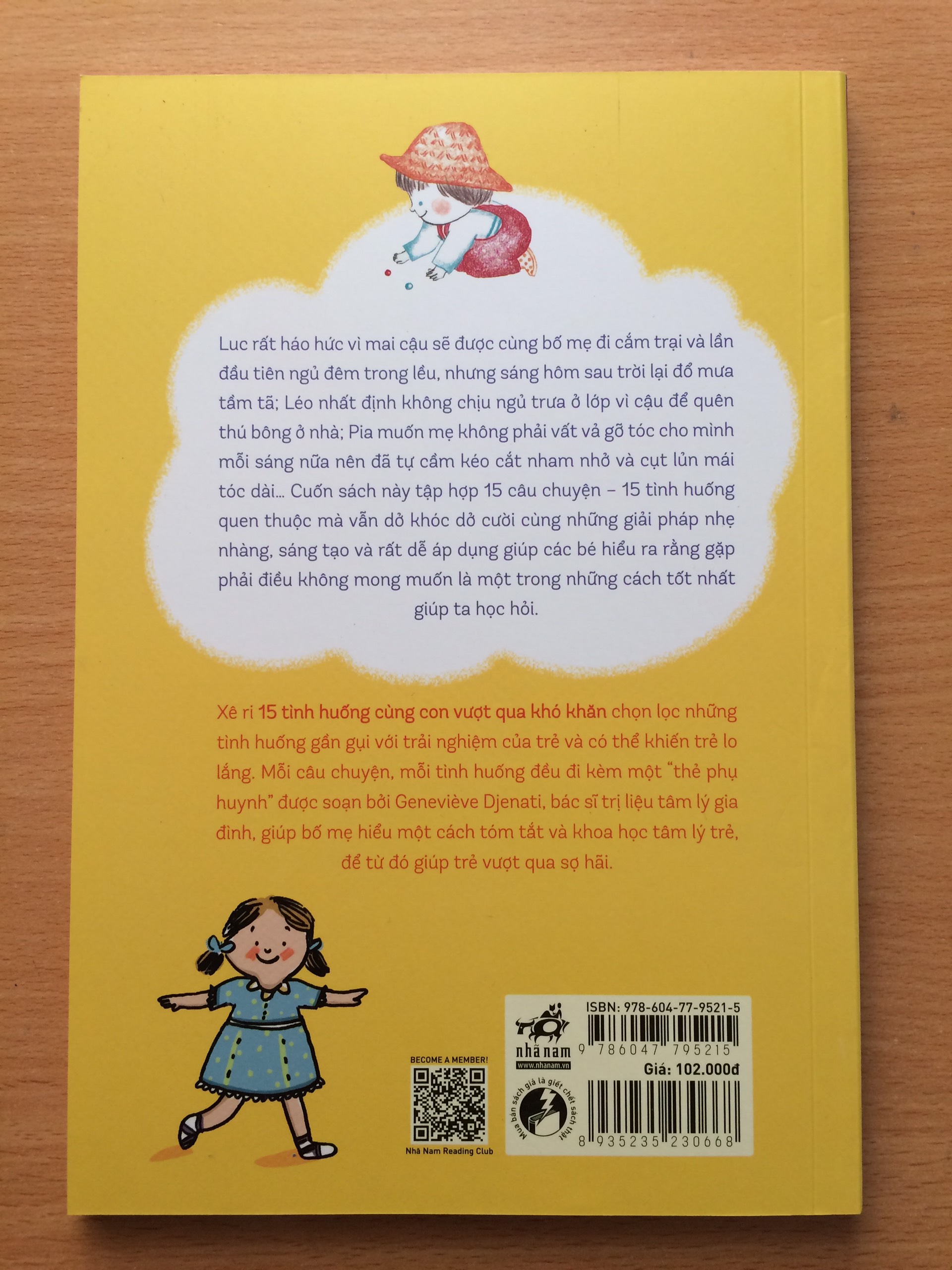 Xê ri 15 tình huống cùng con vượt qua khó khăn chọn lọc những tình huống gần gụi với trải nghiệm của trẻ và có thể khiến trẻ lo lắng. Mỗi câu chuyện, mỗi tình huống đều đi kèm một “thẻ phụ huynh” được soạn bởi Geneviève Djenati, bác sĩ trị liệu tâm lý gia đình, giúp bố mẹ hiểu một cách tóm tắt và khoa học tâm lý trẻ, để từ đó giúp trẻ vượt qua sợ hãi.
