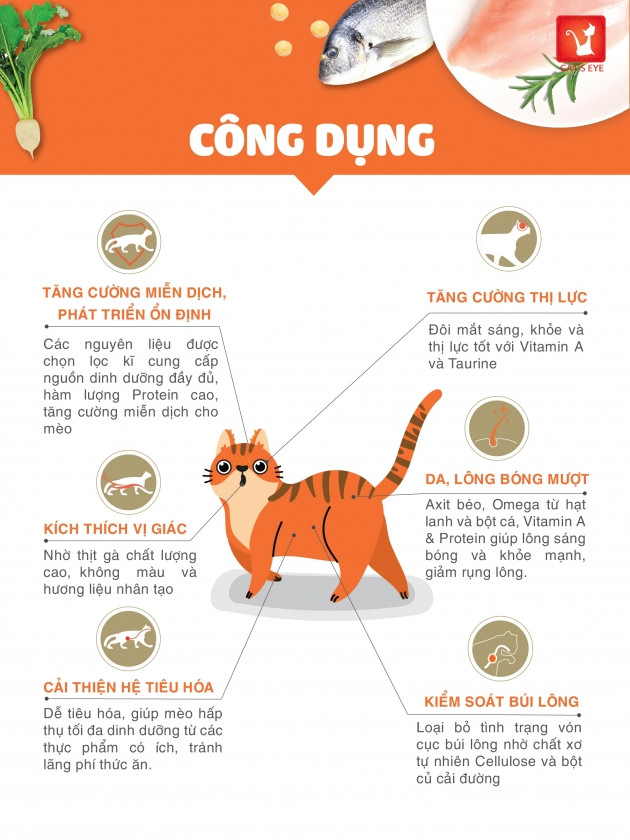 -----------------------------------Giới thiệu sản phẩm------------- -------------------------- Sản xuất theo công nghệ Pháp tại Việt Nam Vị thức ăn: Vị cá ngừ (Tuna flavored) Quy cách đóng gói: thùng 6 gói x 1.300 gram/gói Thành phần dinh