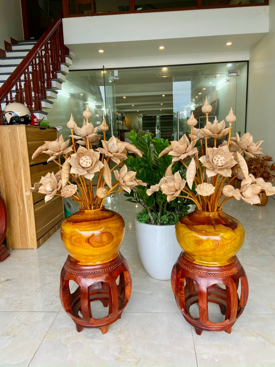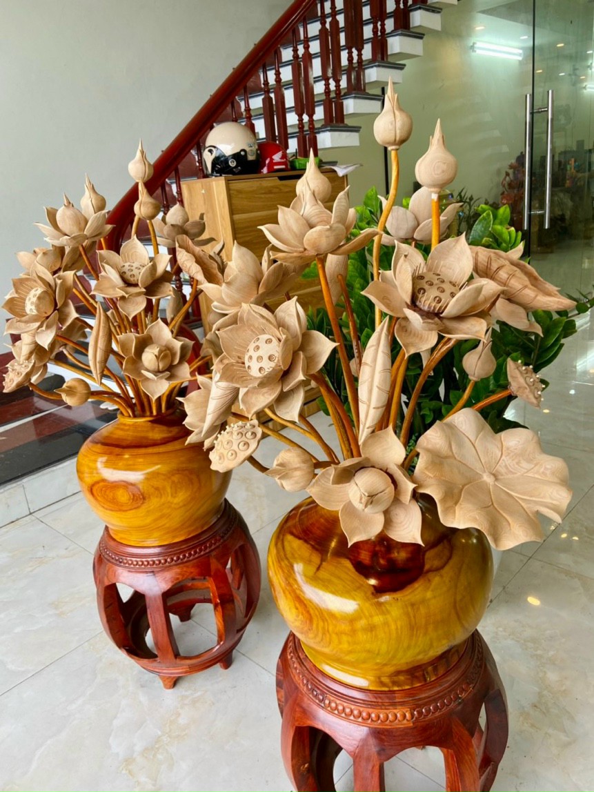 Bình hoa sen gỗ Ngọc am mùi cực thơm cao 1m2, wooden lotus