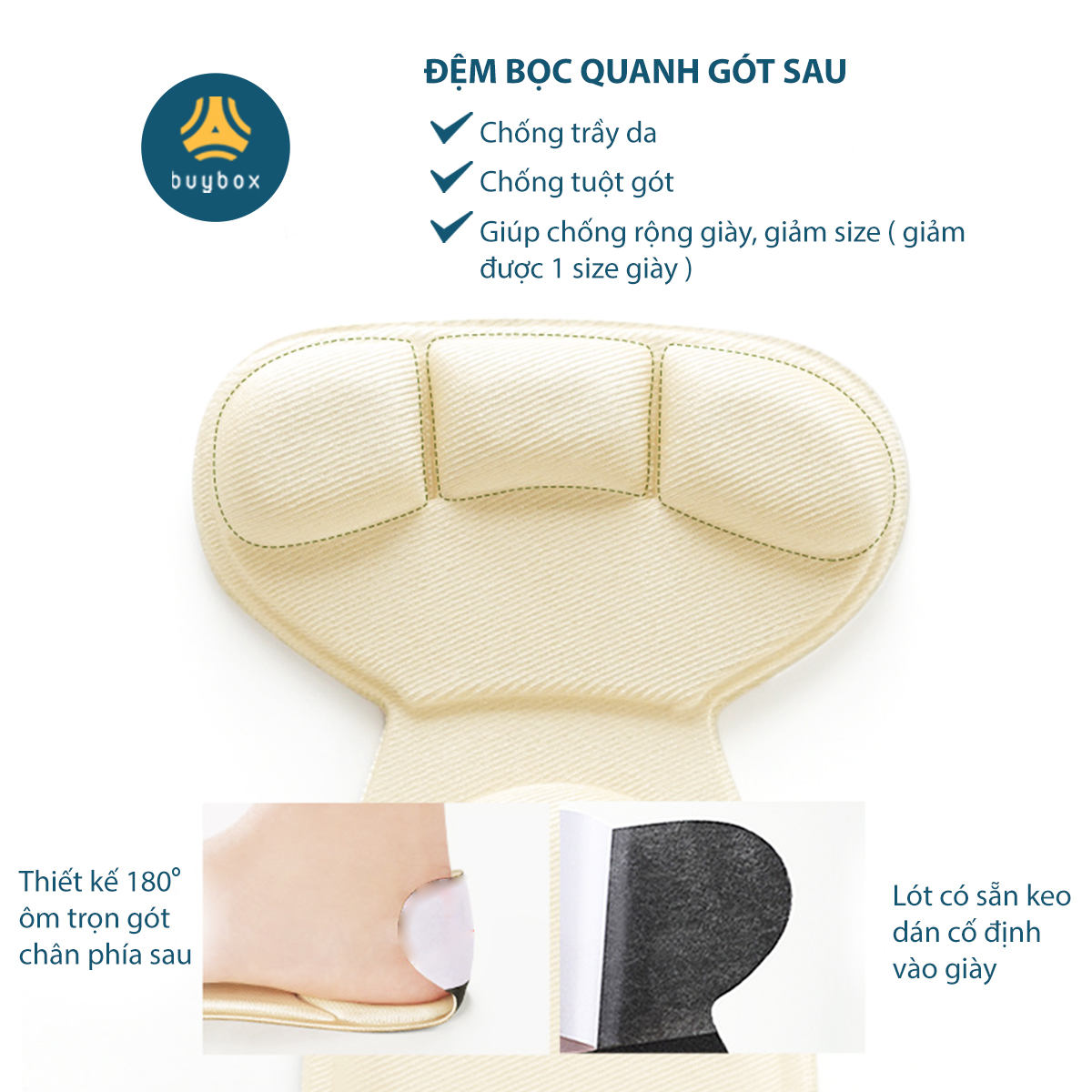CÔNG DỤNG NỔI BẬC Lót giày đa năng chống rộng buybox là sự kết hợp giữa lót giày và lót chống trầy gót chân. Giúp chống rộng giày, giảm size.
