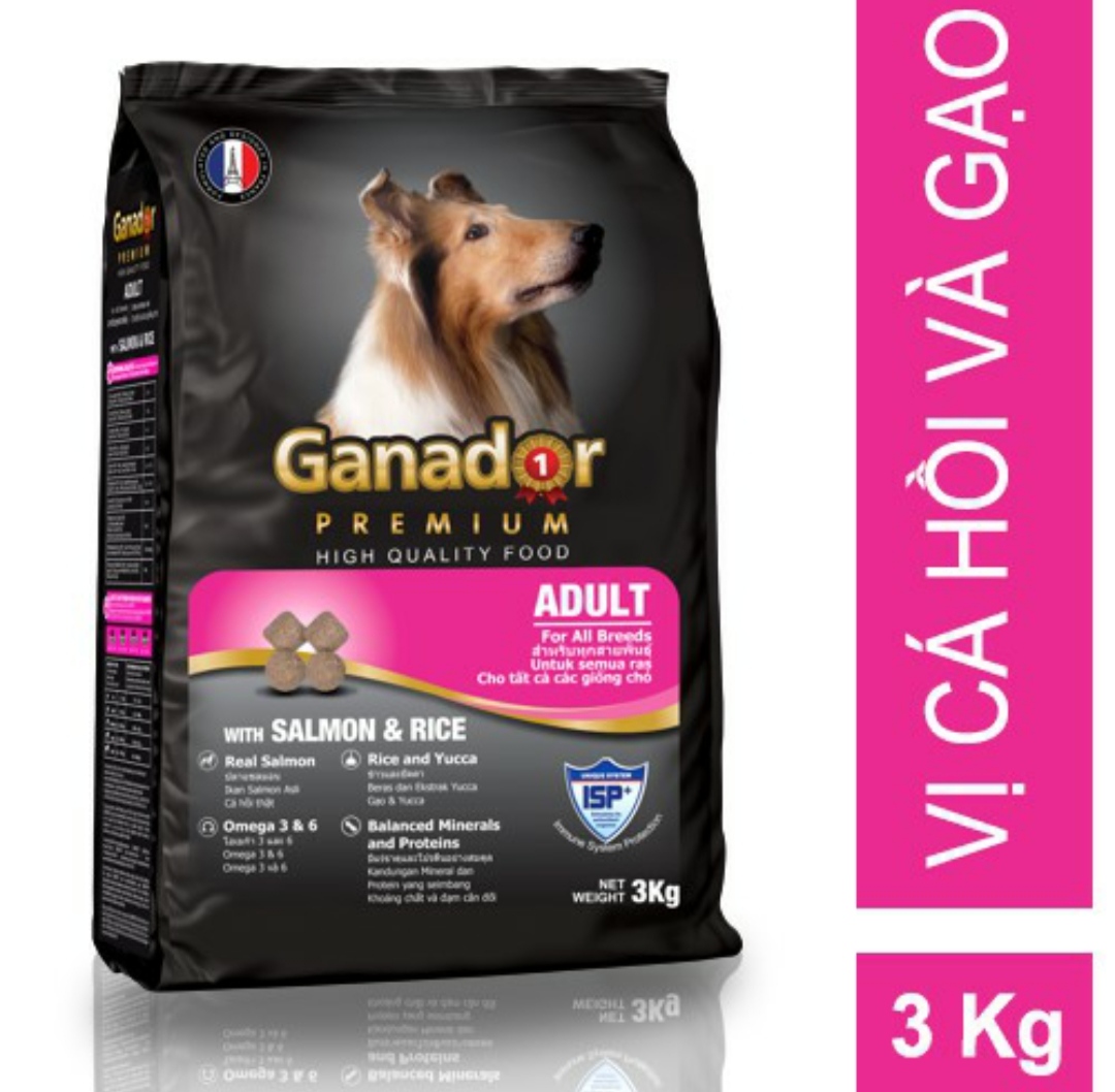 Thức ăn cho chó trưởng thành vị cá hồi và gạo Ganador Adult Salmon and Rice được làm từ cá hồi thật, giàu vitamin B tự nhiên, tham gia sản xuất năng lượng. Bổ sung Omega 3 và 6 cho làn da và bộ lông khỏe mạnh. Thành phần gạo/cơm và yucca cho tiêu hóa tốt và giảm mùi. Canxi, phốt pho và đạm cân đối giúp xương và cơ khỏe mạnh