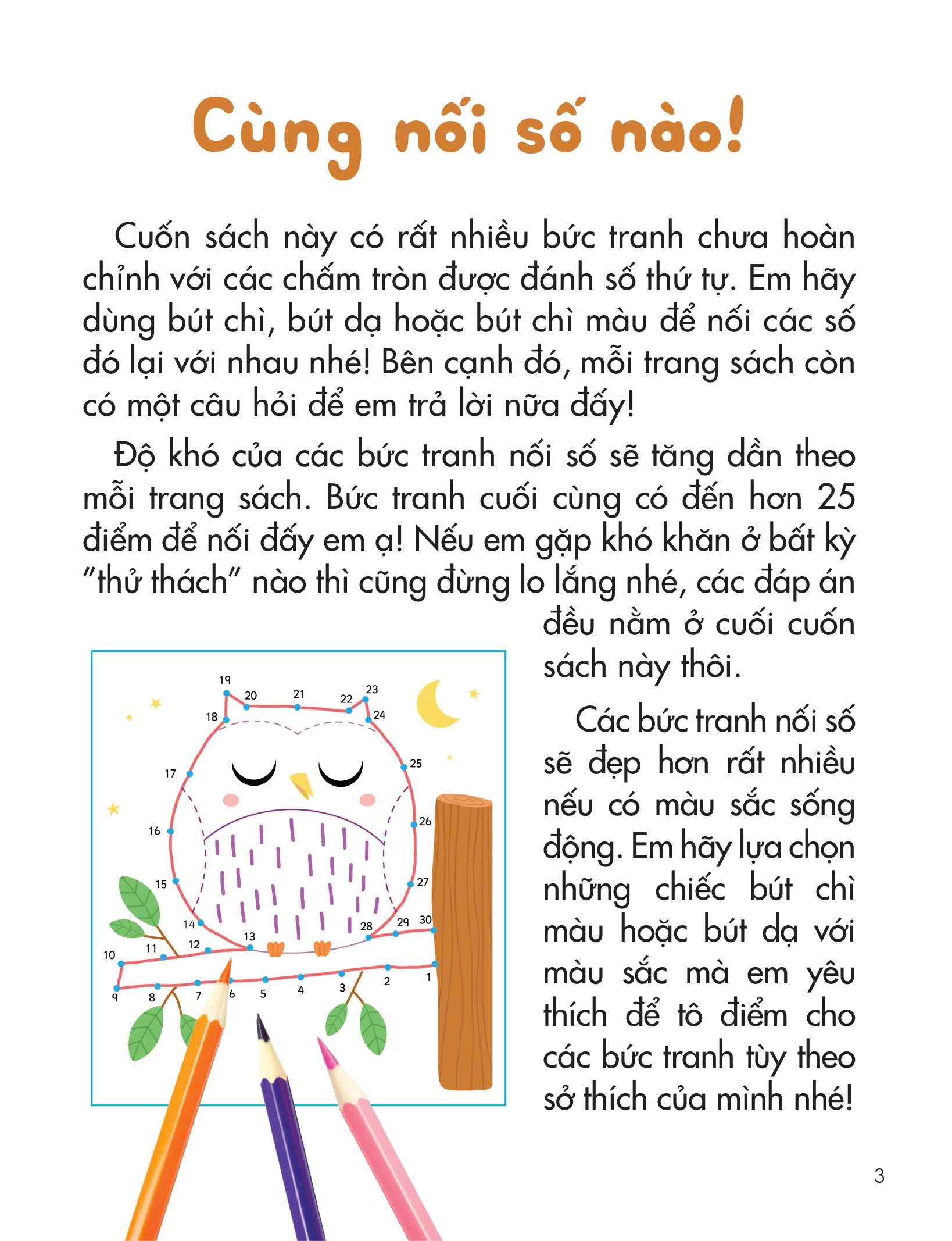 Mua tại TiktokTrong cuốn sách này có hơn 25 bức tranh chưa hoàn chỉnh với các chấm tròn được đánh số thứ tự. Em hãy nối các số đó lại với nhau để hoàn thiện những bức tranh rồi tô màu cho chúng theo ý muốn của mình nhé! Hoạt động thú vị này sẽ giúp em rèn luyện tư duy cùng khả năng iều khiển bút, phối hợp tay - mắt, đồng thời còn phát huy trí tưởng tượng và óc sáng tạo của em nữa ấy.