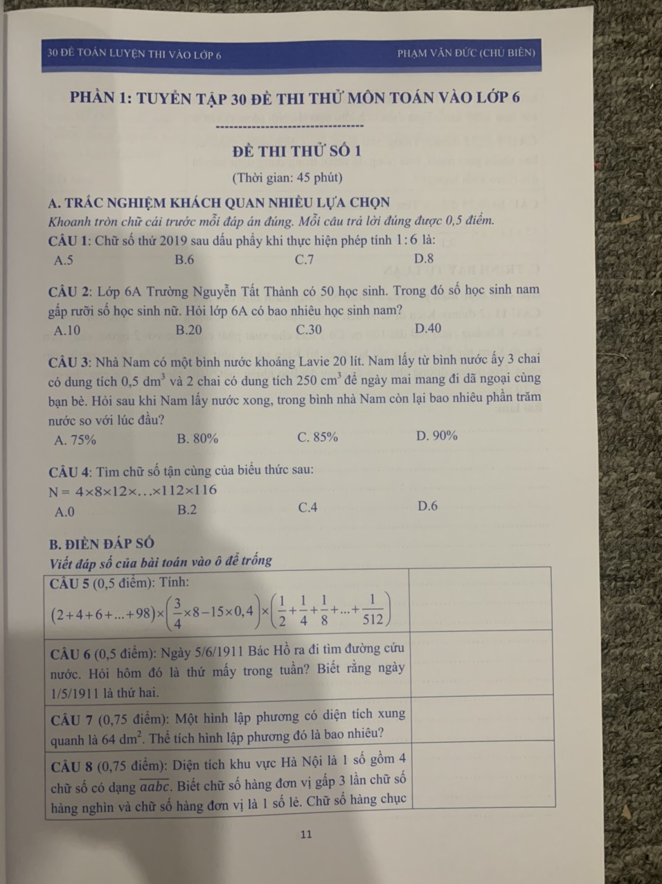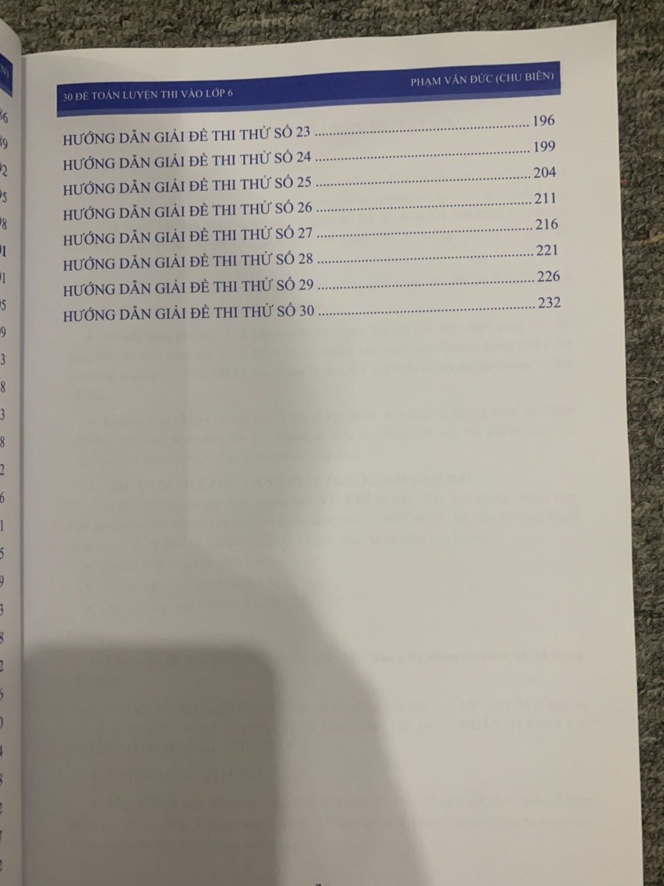 Nội dung gồm có: Phần 1. Tuyển tập 30 đề thi thử môn toán vào lớp 6 Đề thi thử số 1 Đề thi thử số 2 Đề thi thử số 3 Đề thi thử số 4 Đề thi thử số 5 Đề thi thử số 30 Phần thứ 2. Hướng dẫn giải chi tiết Tác giả: Phan Văn Đức, Vũ Thị Bích Doan, Nguyễn Thị Lan Anh, Nguyễn Thu Hương, Nguyễn Thuỳ Trang, Nguyễn Hải Long Số trang: 236 Xuất bản: 2020 Nhà xuất bản: Đại học quốc gia Hà Nội Công ty phát hành: Nxb Đại học quốc gia Hà Nội