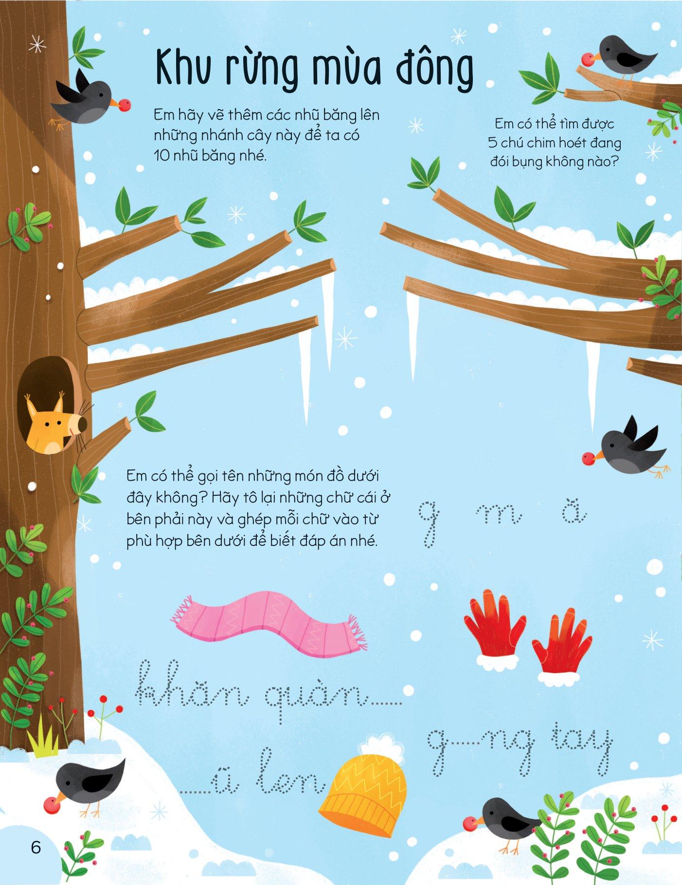 40++ Hoạt Động Sáng Tạo Cho Giáng Sinh Diệu Kỳ Với cuốn sách “40++ Hoạt động sáng tạo cho Giáng Sinh diệu kỳ”, trẻ sẽ được tham gia những trò chơi Giáng Sinh cực thú vị, phù hợp với không khí lễ hội đặc biệt này, ví dụ như: Làm một chiếc Cây Giáng Sinh tí hon Làm người tuyết từ chiếc tất Làm thiệp Giáng Sinh Cách vẽ người tuyết Làm mặt nạ ông già Noel Làm giấy gói quà Cắt những bông tuyết giấy Cuốn sách bao gồm hơn 40 hoạt động sáng tạo độc đáo, có hướng dẫn chi tiết, trực quan, giúp các em vừa phát triển trí tưởng tượng và óc sáng tạo, vừa phát triển năng lực thị giác cũng như khả năng tập trung, kỹ năng vận động và sự phối hợp tay-mắt… giúp các bạn nhỏ rèn luyện IQ, EQ rất hiệu quả. Ngoài ra còn rất nhiều các hoạt động khác như: Giải ô chữ, nối số, vẽ tranh, giải mã mê cung… đang chờ bạn nhỏ khám phá trong cuốn sách này đấy! Hãy cùng thỏa sức sáng tạo để làm nên một mùa Giáng Sinh thật diệu kỳ nhé!