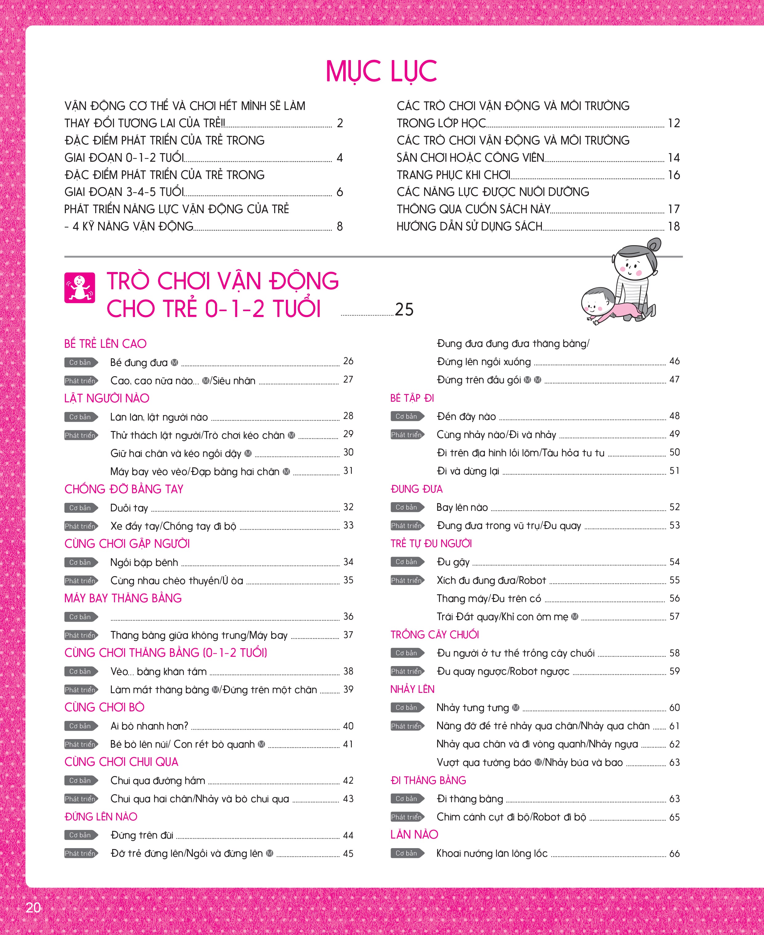 Với phần trình bày chi tiết và minh họa rõ ràng, cuốn sách sẽ giúp phụ huynh và giáo viên có những phút giây vui chơi, tương tác, giao tiếp với trẻ một cách vui vẻ, an toàn và hiệu quả. Hãy cùng trẻ tận hưởng những trò chơi vận động này nhé!