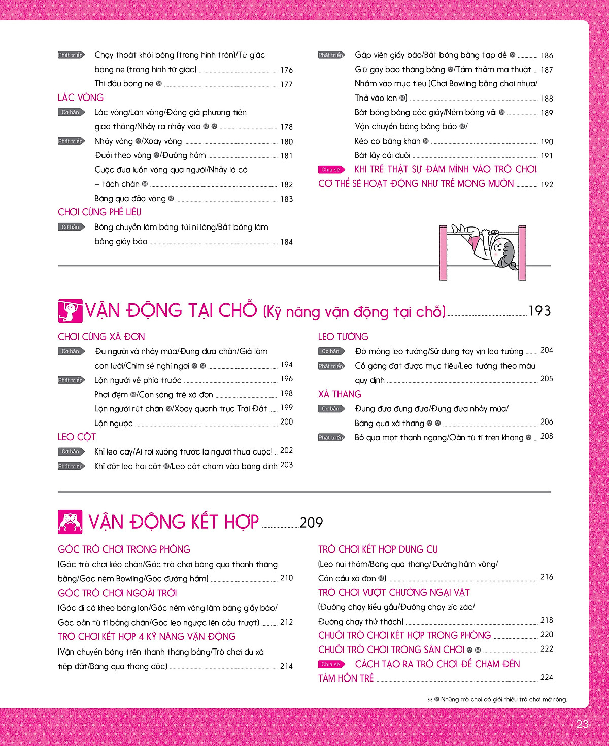 Với phần trình bày chi tiết và minh họa rõ ràng, cuốn sách sẽ giúp phụ huynh và giáo viên có những phút giây vui chơi, tương tác, giao tiếp với trẻ một cách vui vẻ, an toàn và hiệu quả. Hãy cùng trẻ tận hưởng những trò chơi vận động này nhé!