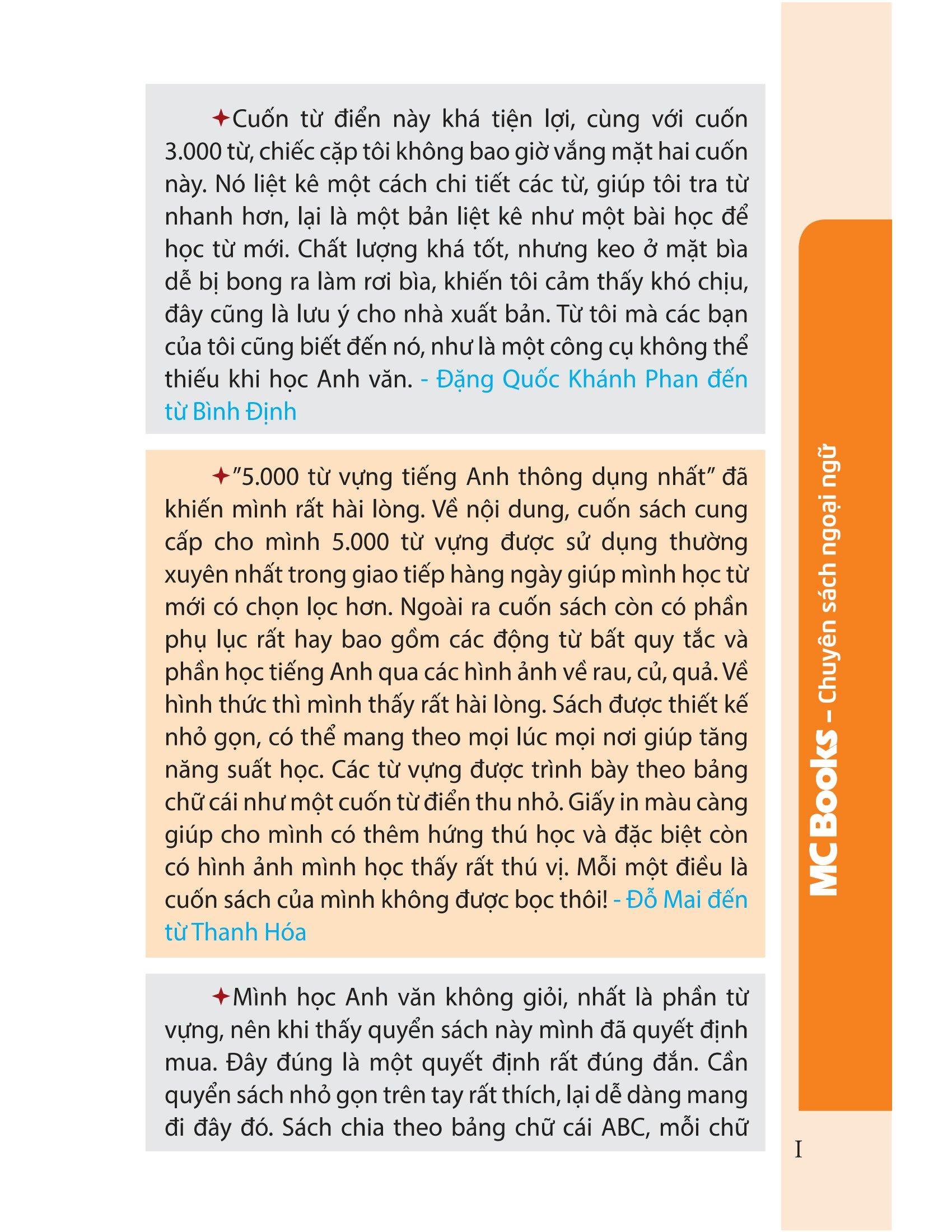 5000 Từ Vựng Tiếng Anh Thông Dụng Nhất Nhà xuất bản : Nhà Xuất Bản Hồng Đức. Công ty phát hành : MCBooks. Tác giả : The Windy. Kích thước : 8 x 12 x