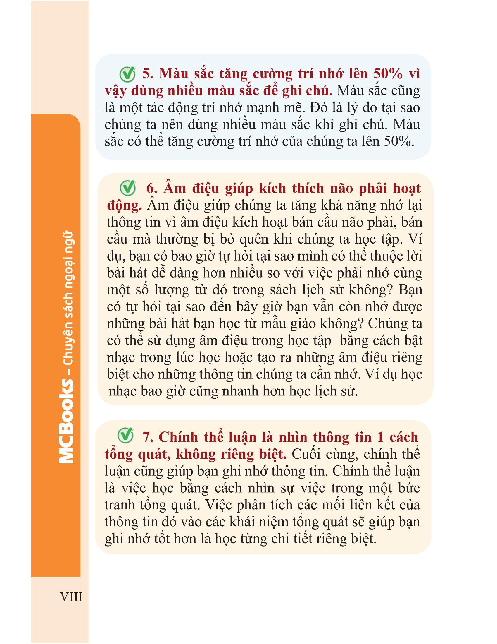 Cuốn sách Luyện siêu trí nhớ từ vựng tiếng Anh theo phương pháp Do Thái dành cho học sinh THPT QUỐC GIA và những người luyện thi chứng chỉ B1, B2, C1 này chính là một công cụ tuyệt diệu để hiện thực hóa giấc mơ điểm 10 của bạn. Với đặc trưng bài thi đại học tiếng Anh hiện nay, bạn cần nắm được 4 vấn đề gồm: - Hiểu sâu và nắm được logic của 12 chủ điểm ngữ pháp chính của bài thi. - Hiểu rõ Logic ngữ âm để lấy trọn vẹn điểm bài ngữ âm - Làm chủ các khả năng hồi đáp để đạt điểm tối đa các câu hỏi giao tiếp - Luyện kỹ năng đọc và nắm vững vốn từ để hoàn thành tốt các bài đọc hiểu Cuốn sách này sẽ giúp bạn bằng cách trả lời xuất sắc cho tất cả những câu hỏi nêu trên bằng phương pháp học ngoại ngữ của người Do Thái, dựa trên kỹ thuật học Cụm Từ và Mẫu Câu trong bối cảnh, bằng âm thanh và vét cạn nội dung và từ vựng mới của 9 chủ đề nội dung toàn diện mà bài thi Đại học thường đề cập tới. CUỐN SÁCH NÀY DÀNH CHO AI? Cuốn sách Luyện Siêu Trí Nhớ Từ Vựng được viết với mục tiêu giới thiệu phương pháp học từ vựng tiếng Anh hiệu quả cho những người muốn tăng cường khả năng ghi nhớ để vừa thuộc nhanh, thuộc sâu, nhớ được nhiều và nhớ lâu, sau đó có thể sử dụng đúng và nhạy bén những gì mình nhớ trong giao tiếp thực tế, và vận dụng hiệu quả trong bài thi. 1. Thứ nhất, cuốn sách hữu ích cho những người có trình độ tiếng Anh từ sơ cấp (elementary) trở lên vì nội dung bài học được trình bày trong sách này hướng tới 9 chuyên đề nội dung của bài thi đại học và các chứng chỉ B1, B2, C1, vốn là những bài thi đòi hỏi trình độ tiếng Anh cao 2. Thứ hai là cuốn sách sẽ hữu ích cho những giáo viên tiếng Anh và những người nghiên cứu phương pháp học tiếng Anh hiệu quả. 3. Thứ ba, cuốn sách này đặc biệt hiệu quả cho những người luyện thi đại học môn tiếng Anh. Vì cuốn Luyện siêu trí nhớ từ vựng này sẽ trình bày toàn diện các nội dung thiết yếu là 9 chuyên đề nội dung toàn diện mà bài thi đại học kiểm tra. Các từ vựng khi được trình bày theo cụm từ và mẫu câu thiết yếu, lại được hỗ trợ bằng các phương tiện hiện đại gồm online learning (học trực tuyến) và mobilelearning (học trên điện thoại di động) thì người học sẽ dễ học hơn rất nhiều nhờ có thêm âm thanh, minh họa cùng với bối cảnh của từ vựng.