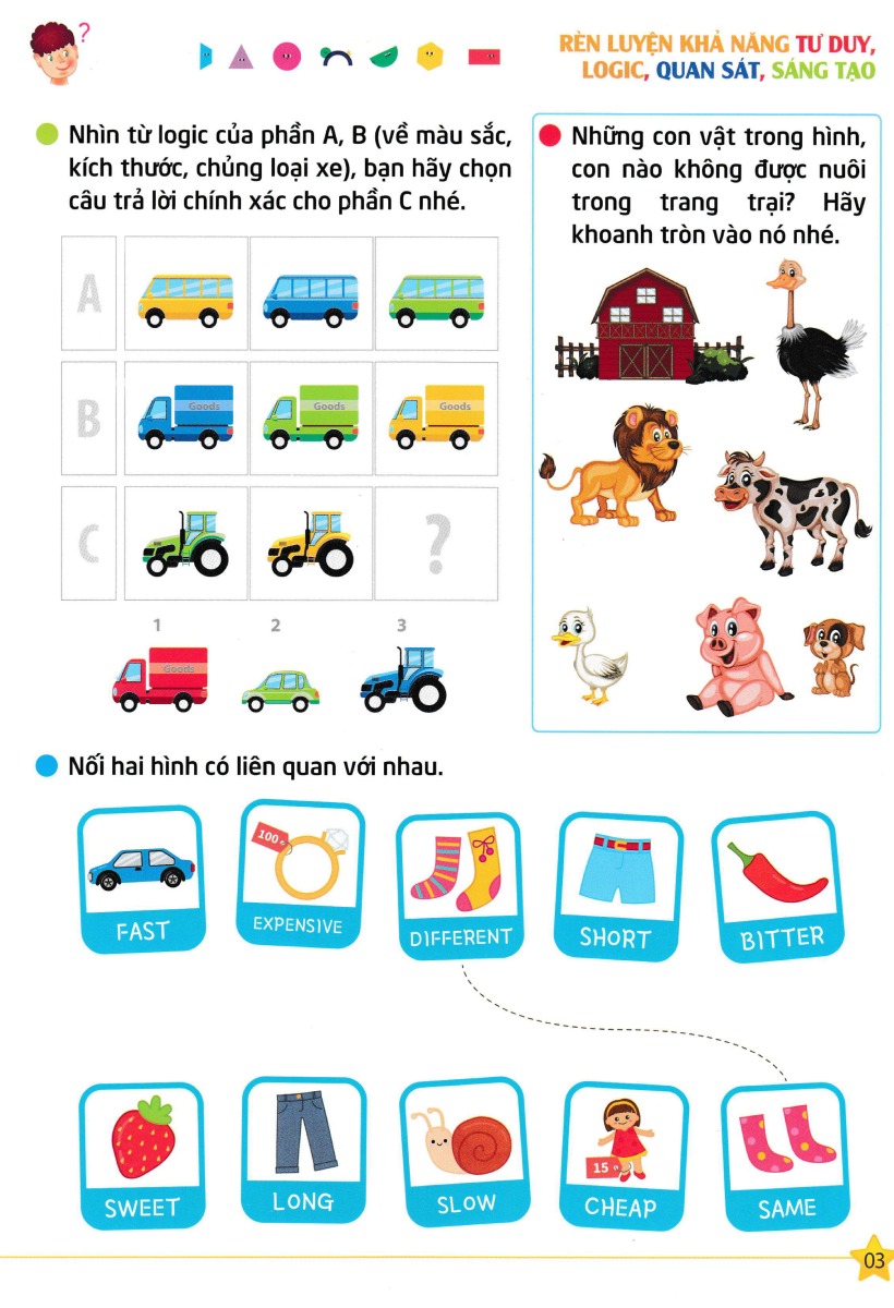 Mua tại Tiktok668 Câu Hỏi Phát Triển Trí Thông Minh Cho Trẻ - Tập 4 Bộ sách 668 Câu Hỏi Phát Triển Trí Thông Minh Cho Trẻ nhằm phát triển IQ,EQ, Cung cấp những trò chơi toán học úp trẻ phát huy tối đa khả năng nhận thức, tư duy phân kỳ, tưởng tượng, tri giác về không gian, phán đoán, suy luận và thông minh cảm xúc giúp trẻ rèn luyện tư duy một cách toàn diện. Nhiều bài trong bộ sách được trang bị để có sự tương tác giữa bố mẹ và con cái, vừa nân cao năng lực tuy duy của mình vừa giúp trẻ phát triển các kỹ năng tư duy cần thiết để trẻ xây dựng kỹ năng, sự khéo léo, tính chính xác và rèn luyện độ kiên trì