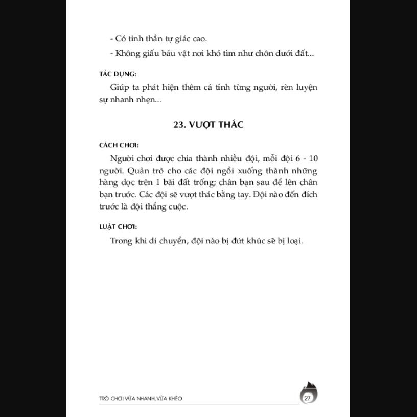 Đa dạng các loại trò chơi: Sách giới thiệu nhiều trò chơi khác nhau, từ những trò chơi đơn giản đến những trò chơi phức tạp, phù hợp với mọi lứa tuổi và điều kiện khác nhau.