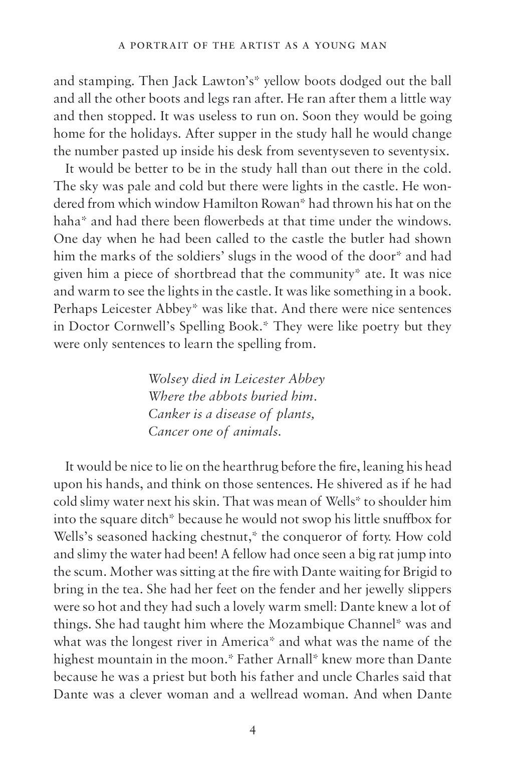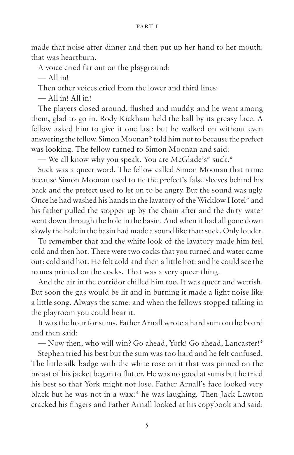 James Joyce's first novel, A Portrait of the Artist as a Young Man is a Ku¨nstlerroman which chronicles the emotional and intellectual development of Stephen Dedalus – a character partly based on the author himself – from his early childhood and his school and university days all the way to his first forays as a young artist. Dedalus's thoughts and epiphanies reveal the tensions, insecurities and feelings of guilt that are the product of living in a country and period so deeply divided along religious and political lines.