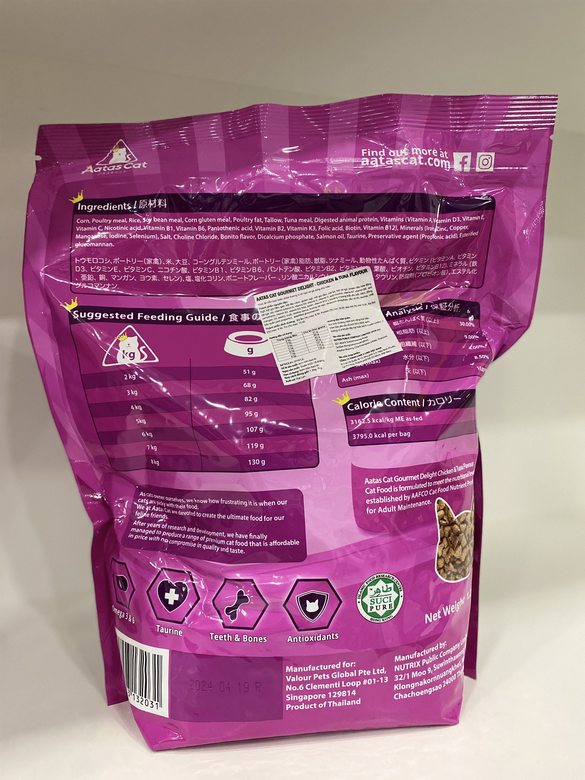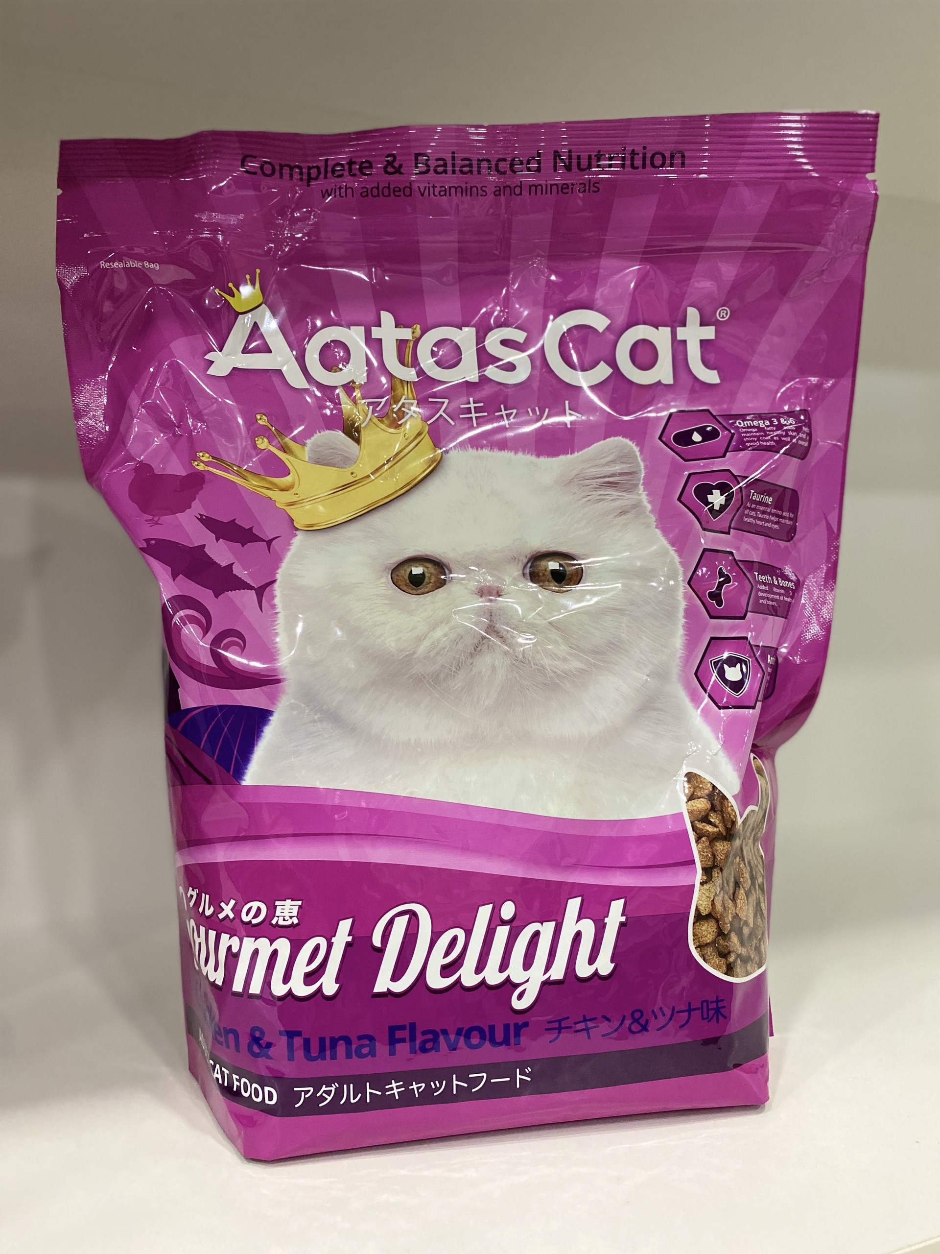 Aatas Cat Gourmet Delight – Chicken & Tuna Flavour. Thức ăn hạt cân bằng & hoàn hảo cho mèo trưởng thành.