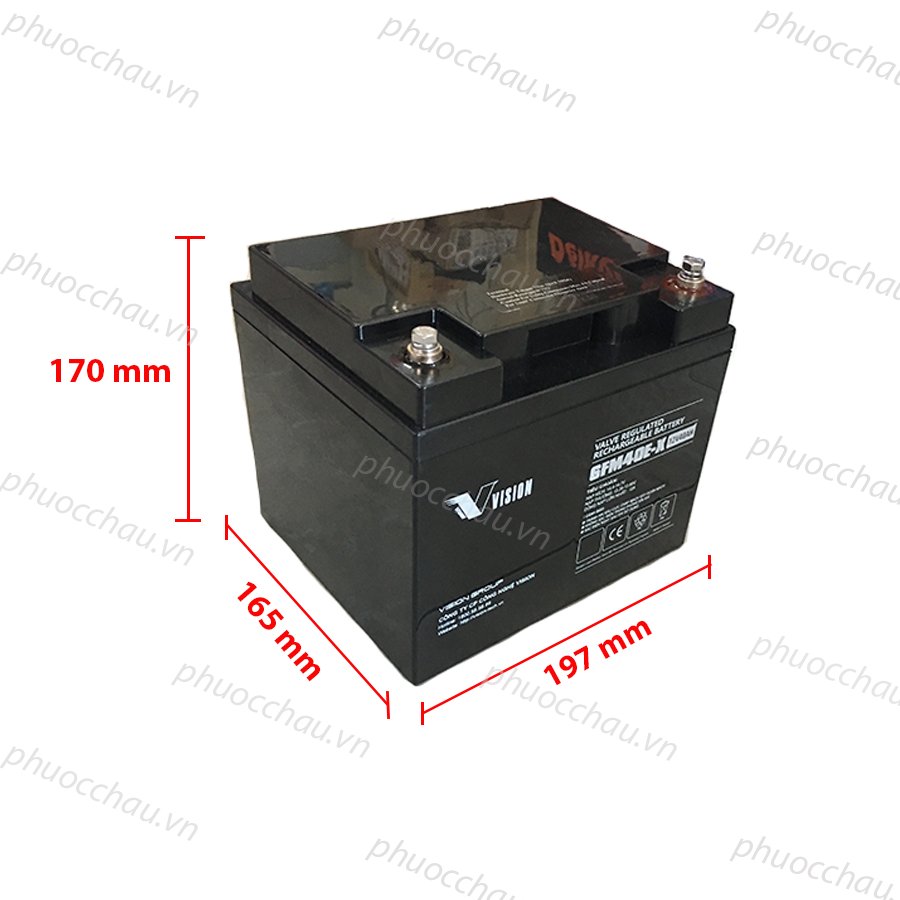 - Dòng sản phẩm Ắc Quy VISION 6FM40E-X (12V-40AH) được thiết kế cho các ứng dụng như UPS, viễn thông, thiết bị điện… Với tuổi thọ thiết kế trên 10 năm, dòng sản phẩm FM