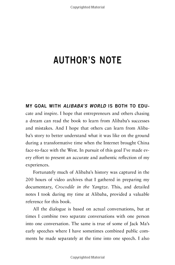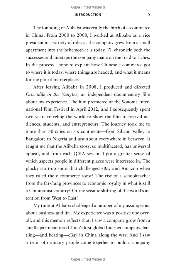 In September 2014, a Chinese company that most Westerners had never heard of held the largest IPO in history - bigger than Google, Facebook and Twitter combined. Alibaba, now the world's largest e-commerce company, mostly escaped Western notice for over ten years, while building a customer base larger than Amazon's, and handling the bulk of e-commerce transactions in China. How did it happen? And what was it like to be along for such a revolutionary ride?