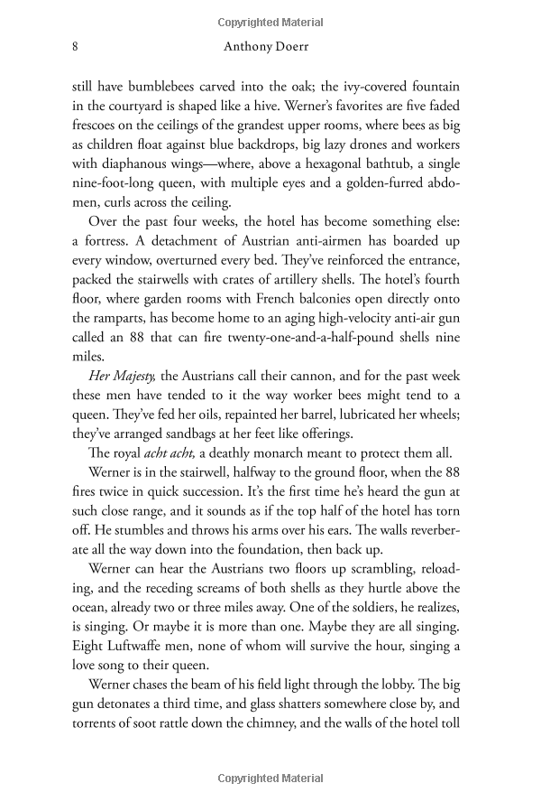 From the highly acclaimed, multiple award-winning Anthony Doerr, the stunningly beautiful instant New York Times bestseller about a blind French girl and a German boy whose paths collide in occupied France as both try to survive the devastation of World War II. Marie-Laure lives in Paris near the Museum of Natural History, where her father works. When she is twelve, the Nazis occupy Paris and father and daughter flee to the walled citadel of Saint-Malo, where Marie-Laure's reclusive great uncle lives in a tall house by the sea. With them they carry what might be the museum's most valuable and dangerous jewel. In a mining town in Germany, Werner Pfennig, an orphan, grows up with his younger sister, enchanted by a crude radio they find that brings them news and stories from places they have never seen or imagined. Werner becomes an expert at building and fixing these crucial new instruments and is enlisted to use his talent to track down the resistance. Deftly interweaving the lives of Marie-Laure and Werner, Doerr illuminates the ways, against all odds, people try to be good to one another. Doerr's "stunning sense of physical detail and gorgeous metaphors" (San Francisco Chronicle) are dazzling. Ten years in the writing, a National Book Award finalist, All the Light We Cannot See is a magnificent, deeply moving novel from a writer "whose sentences never fail to thrill" (Los Angeles Times).
