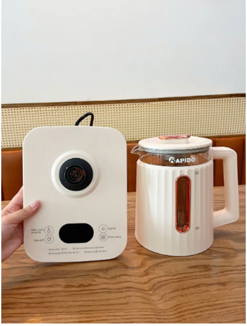 Ấm điện đa năng Rapido máy đun nước siêu tốc, chưng yến, pha sữa, cài đặt nhiệt độ thông minh, BH 6 tháng   Điện áp/Tần số: 220V/50Hz Công suất: 800 W Dung tích: 1.8L Hẹn giờ: 0-24h Chất liệu: Thủy tinh cao cấp chống sốc nhiệt, inox 304, Nhựa PP Khối lượng: 1.35 kg Kích thước hộp: 245x220x270   Với dung tích chỉ 1.8L thiết kế nhỏ gọn, màu sắc tươi mới thân bình trong suốt đẹp mắt có thể sử dụng tại nhà hoặc văn phòng làm việc, góp phần mang đến phong cách trang nhã, hiện đại cho người sử dụng.     Cảm biến nhiệt thông minh Bộ phận cảm biến nhiệt của ấm điện đa năng Rapido giúp nhận biết nhiệt độ một cách thông minh từ đó điều chỉnh thời gian đun nấu hợp lý.   Chất liệu cao cấp chống sốc nhiệt, an toàn với sức khỏe Ấm điện đa năng Rapido được làm bằng chất liệu cao cấp. Thân và nắp ấm được làm từ thủy tinh cao cấp chống sốc nhiệt, chống bám bẩn, bám màu nên dễ vệ sinh sau khi sử dụng. mặt bộ đun bằng nhựa chịu nhiệt chống va đập . Lòng ấm và phần viền làm bằng inox 304 an toàn với nhiệt độ cao, chóng gỉ sét. Tay cầm bằng nhựa PP cao cấp chịu nhiệt cao, cách nhiệt an toàn cho người dùng. Đáy nồi dày dặn, không bị cháy khi đun trong thời gian dài. Hoạt động ổn định với công suất cao   Ấm điện đa năng Rapido hoạt động với công suất 800W ấm có thể hoạt động trong thời gian dài mà không sợ chập cháy. Sau khi hoạt động ở công suất cao, ấm sẽ chuyển về chế độ giữ ấm giúp người dùng có thể sử dụng lâu dài. Chế độ hẹn giờ bật và tắt Thiết lập chế độ hẹn giờ bật (từ 0-24h), thuận tiện cài đặt thời gian mong muốn ấm hoạt động. Chế độ hẹn giờ bật được thực hiện khi nồi chưa hoạt động. Ngược lại chế độ hẹn giờ tắt được thiết lập khi nồi đang hoạt động. Thời gian hẹn giờ tắt trong khoảng 10-120 phút.   Cài đặt công suất  Công suất được cài đặt trong khoảng từ 100W-800W, người dùng có thể dễ dàng cài đặt công suất nấu theo ý thích. Màn hình LED, cảm biến dễ dàng thao tác Màn hình LED sắc nét theo dõi trạng thái đun và thơi gian đun. Các nút chức năng bằng cảm biến độ nhạy cao, dễ dàng thao tác.   10 CHỨC NĂNG CỦA ẤM ĐIỆN ĐA NĂNG RAPIDO Trà hoa, trà trái cây là thức uống tốt cho sức khỏe có tác dụng chống lão hóa, phòng ngừa ung thư,… được nhiều người ưa chuộng. Sử dụng ấm điện đa năng Rapido để pha trà hoa là cách tốt nhất để giữ lại đầy đủ những chất có lợi trong trà hoa. Ngoài ra máy còn có chức năng pha trà đen, trà đỏ, trà xanh. Sau khi đun sôi, ấm sẽ chuyển sang chế độ giữ ấm. Nấu mì, nấu súp, nấu lẩu, luộc trứng Ấm điện đa năng Rapido có thể dùng thay thế nồi nấu thông thường, dùng để nấu các món ăn thường ngày vô cùng tiện dụng như nấu mì, nấu sup, nấu lẩu, nấu canh, luộc trứng. Nấu chậm (hầm cháo, hầm xương, nấu chè) Sử dụng ấm điện đa năng thay thế nồi áp suất cho các món hầm như cháo, xương. Chức năng này hoàn toàn tự động. Người dùng chỉ cần sơ chế nguyên liệu, cho vào ấm và bật chế độ thích hợp. Sau khi 5 tiếng bíp xuất hiện là có thể bỏ ra sử dụng. Chưng yến Sơ chế tổ yến cùng các nguyên phụ liệu, cho vào ấm điện đa năng Rapido, bật chế độ chưng yến Sau khi đun sôi, ấm sẽ tự động chuyển sang chế độ “đun nhỏ lửa” trong 30’. Cuối cùng chuyển sang chế độ giữ ấm. Sắc thuốc bắc Sắc thuốc bắc là công việc đòi hỏi cẩn thận, tỉ mỉ trong canh nhiệt. Để tạo ra chén thuốc bắc đúng chuẩn, đảm bảo giữ nguyên tác dụng của thuốc người dùng cần bỏ ra rất nhiều tâm huyết và thời gian. Chính vì thế, với nhiều người sắc thuốc bắc là cơn ác mộng trong bếp. Giờ đây chỉ cần sử dụng ấm điện đa năng Rapido sắc thuốc bắc sẽ không còn làm khó người dùng. Chỉ cần cho thuốc vào ấm, thêm nước và chọn chế độ sắc thuốc. Sau khi đạt tới nhiệt độ tiêu chuẩn, ấm sẽ đun tiếp ở nhiệt độ thấp hơn trong vòng 5 phút, sau đó đun tiếp ở nhiệt độ thấp hơn nữa trong vòng 25 phút cuối cùng chuyển sang chế độ giữ ấm trong 2 giờ. Làm sữa chua Xếp các hộp sữa nguyên liệu hoặc đổ trực tiếp sữa nguyên liệu và ấm (lưu ý: nếp xếp hộp vào thì nên đổ một chút nước ở dưới đáy ấm) sau đó bật chức năng “làm sữa chua’ Sau khi đun 100W trong 8 phút, ấm sẽ ủ sữa trong 8 tiếng để sữa lên men. Sau hơn 8 tiếng sẽ thành sữa chua hoàn chỉnh. Pha sữa Với các ông bố bà mẹ nuôi con nhỏ, pha sữa hẳn là công việc hàng ngày mà ai ai cũng “sợ” nhất là những gia đình chưa có kinh nghiệm. Nếu như pha sữa cần nhất là đóng đếm nhiệt độ nước thì với chức năng pha sữa của ấm điện đa năng Rapido, nhiệt độ được đưa về đúng nhiệt độ pha sữa, người dùng chỉ cần đổ vào bình là xong. Vô cùng tiện lợi và an toàn. Ngoài các chức năng này ra người dùng cũng có thể tự cài đặt thời gian theo nhu c