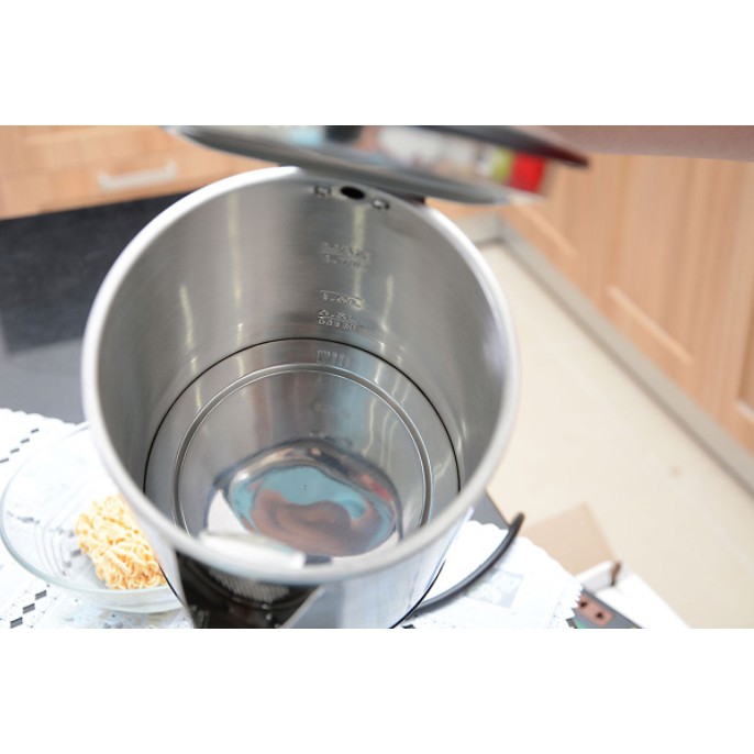 Dung tích: 1.7L Công suất: 1800W Ưu điểm nổi bật: 2 lớp cách nhiệt: Thép không gỉ bên trong, nhựa mát tay bên ngoài – an toàn tuyệt đối, nhất là với gia đình có
