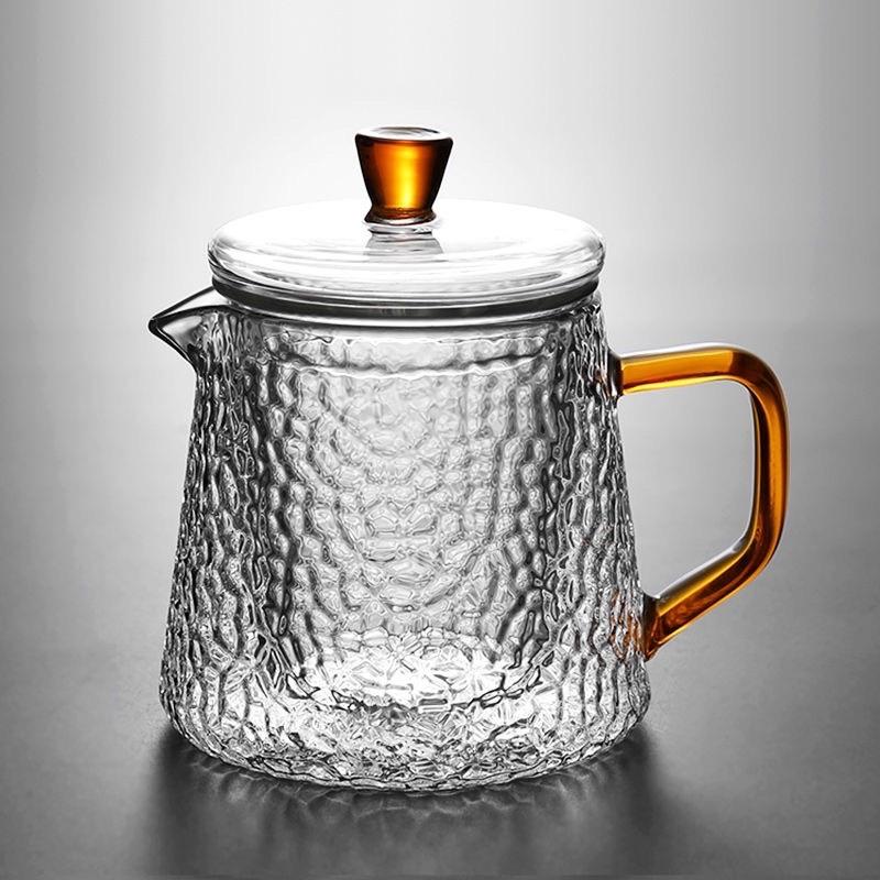 ✨Ấm pha trà thủy tinh quai vàng vân sần 600ml