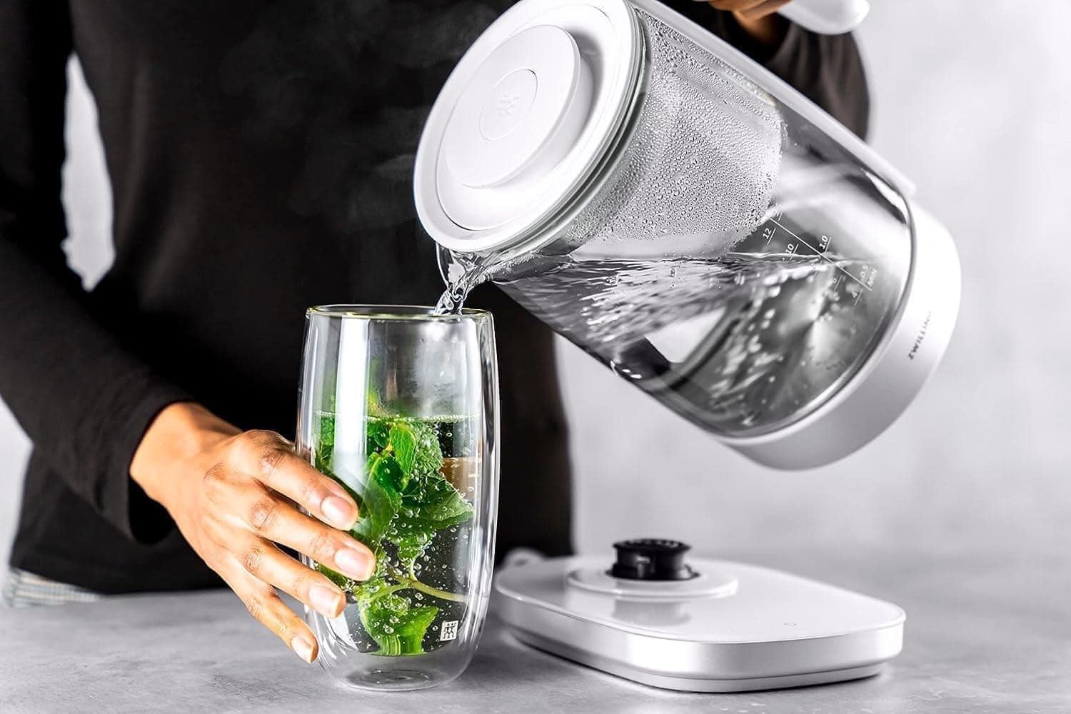 Ấm siêu tốc pha trà 2in1 Zwilling Enfinigy 1.7 L với thiết kế thanh lịch, bao gồm 10 chương trình được cài đặt sẵn và 6 mức nhiệt độ khác nhau tùy chọn (40 °C, 60 °C, 70 °C, 80 °C, 93 °C, 100 °C), đáp ứng được nhiều mục đích sử dụng