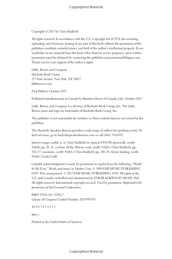 You might never be able to build a robot, pilot a spacecraft, make a music video or perform basic surgery in zero gravity like Col. Hadfield. But his vivid and refreshing insights will teach you how to think like an astronaut, and will change, completely, the way you view life on Earth -- especially your own.