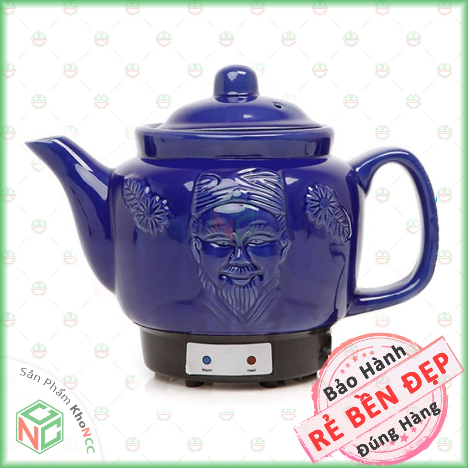 Dung tích: 2.8 L- Công suất: 450W- Thân ấm thiết kế với hoa văn ông già - củ sâm- Nguồn gốc sứ từ làng gốm Bát Tràng nổi tiếng- Chất liệu gốm được nung ở