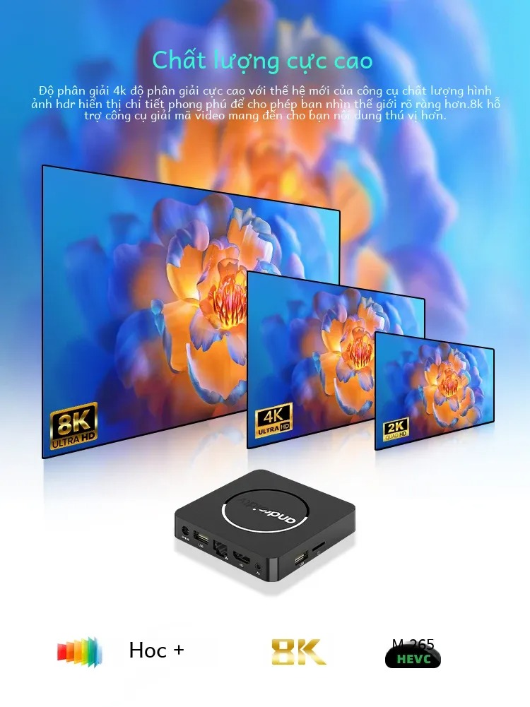 Android tv điều khiển cử chỉ tay người dùng và giọng nói tiếng việt hỗ trợ bluetooth Wifi 2 băng tần kép cài sẵn truyền hình cáp và xem phim HD miễn phí vĩnh viễn - Hàng nhập khẩu Nhằm đáp ứng nhu cầu khách hàng cần giá thành hợp lý , Hãng cho ra đời Android Smart TV  Phiên bản mới Điều khiển giọng nói bằng tiếng Việt RAM: 2GB , ROM: 8G Bluetooth Wifi kép 2.4G & 5G Hệ điều hành Android 13 Cài sẵn ứng dụng xem phim, tivi truyền hình cáp miễn phí vĩnh viễn Chống lag và giật khi sử dụng, thời gian khởi động nhanh Cài đặt sẵng kho ứng dụng miễn phí xem phim, karaoke, đọc báo, lướt web, coi truyền hình Xem truyền hình cáp trên 150 kênh miễn phí vĩnh viễn Karaoke suốt cả ngày với các ứng dụng Karaoke chuyên nghiệp đã được cài đặt sẵn. Có thể cắm Amply , Hát Karaoke, Thay thế đầu PS kết nối loa không dây   Hỗ trợ cử chỉ tay người dùng và giọng nói tiếng Việt Bạn chỉ cần nói " mở youtube" sản phẩm sẽ mở vào ứng dụng tối ưu hóa hiệu năng sử dụng Trên thị trường Android Tivi Box hiện nay, nếu nhắc đến loại sản phẩm có giá thành rẻ thì không thể không nhắc đến dòng sản phẩm Android Tivi Box  , với giá thành hiện tại chỉ khoảng dưới 1 triệu đồng. Mặc dù giá thành rẻ, tuy nhiên cấu hình của nó cũng có thể nói là chấp nhận được, thậm chí còn đáp ứng khá tốt các nhu cầu vượt mức bình thường của những người sử dụng khó tính. Sự ra đời của dòng sản phẩm chắc chắn sẽ lại một lần nữa khuấy động thị trường Android Tivi Box giá rẻ, chúng ta cùng hiểu sâu hơn về chiếc Android này để xem những bước đột phá và cải tiến mới sẽ như thế nào. I –  THIẾT KẾ CỰC NHỎ GỌN Ngoài chipset đi kèm với 2GB RAM và 8GB bộ nhớ eMMC. Kích thước là rất nhỏ  8.2 x 8.2 x 1.7cm . thiết bị cũng chạy trên Android tv 13 Phiên bản quốc tế 64 ngôn ngữ có tiếng Việt Hiệu năng cao với thế hệ chip mới Hệ điều hành: android TV Tính năng Google Assistant (Tìm kiếm bằng giọng nói): Chỉ cần nói mở Youtube sản phẩm sẽ tự vào chương trình hoặc bất cứ tên một bài nhạc nào quý khách không cần nhập từng ký tự       Phiên bản cao cấp Android 13 mới
