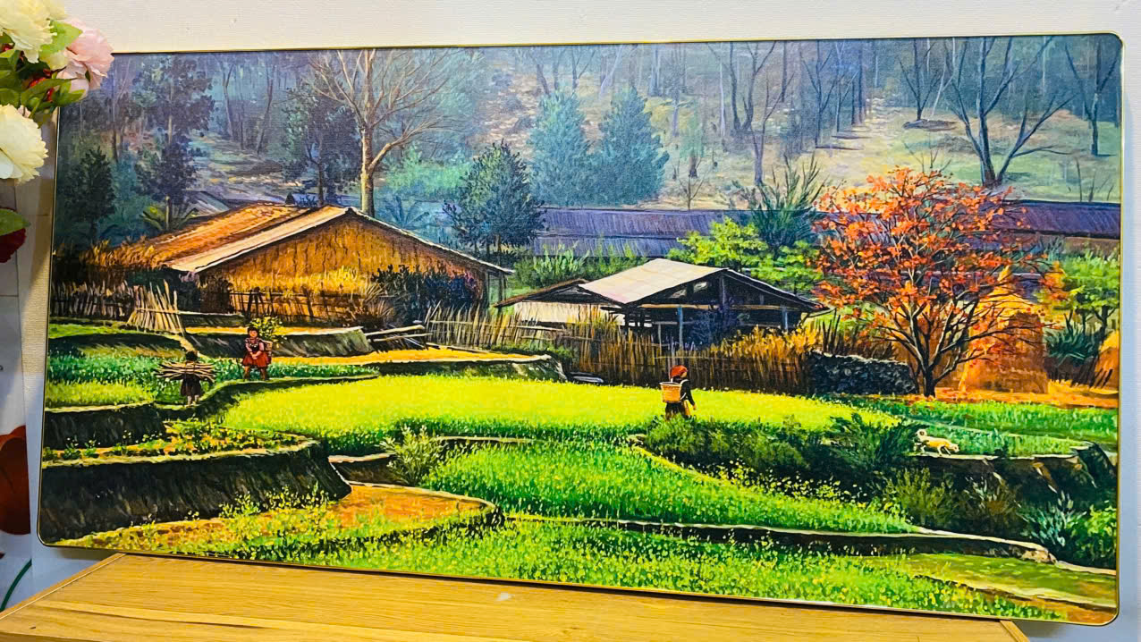 Tranh treo tường làng quê Việt Nam yên bình - Kích thước của tranh : Kích thước : 45x70cm - 50x80cm - 60x100cm - 70x120cm - Chất liệu : Tráng gương - Khách hàng muốn