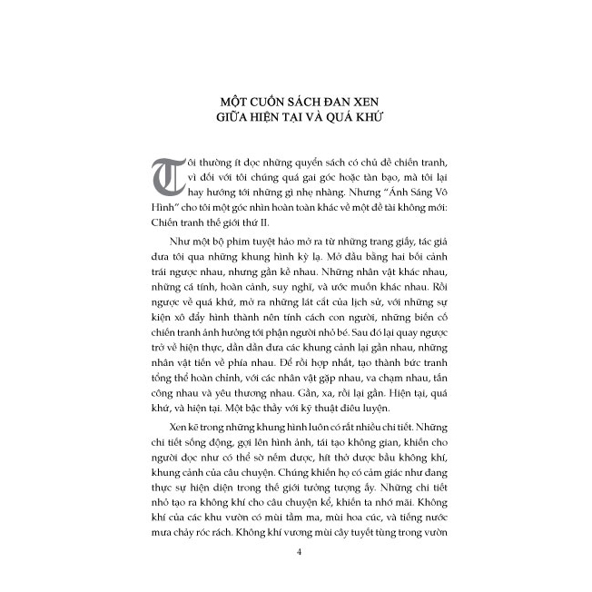 Cậu bé mồ côi Werner lớn lên cùng em gái trong một khu mỏ than ở Đức. Cậu bị một chiếc điện đài thô sơ mà hai anh em tìm được thu hút, sau này Werner trở thành chuyên gia lắp ráp và sửa chữa những thiết bị thông tin. Tài năng ấy đem lại cho cậu một vị trí trong học viện tàn bạo của Đoàn Thanh niên Hitler, sau đó là nhiệm vụ đặc biệt theo dấu quân kháng chiến. Ngày càng nhận thức được cái giá sinh mệnh con người phải trả cho trí tuệ của mình, Werner đi qua trung tâm cuộc chiến, cuối cùng, đến Saint-Malo, nơi cậu gặp gỡ Marie-Laure.