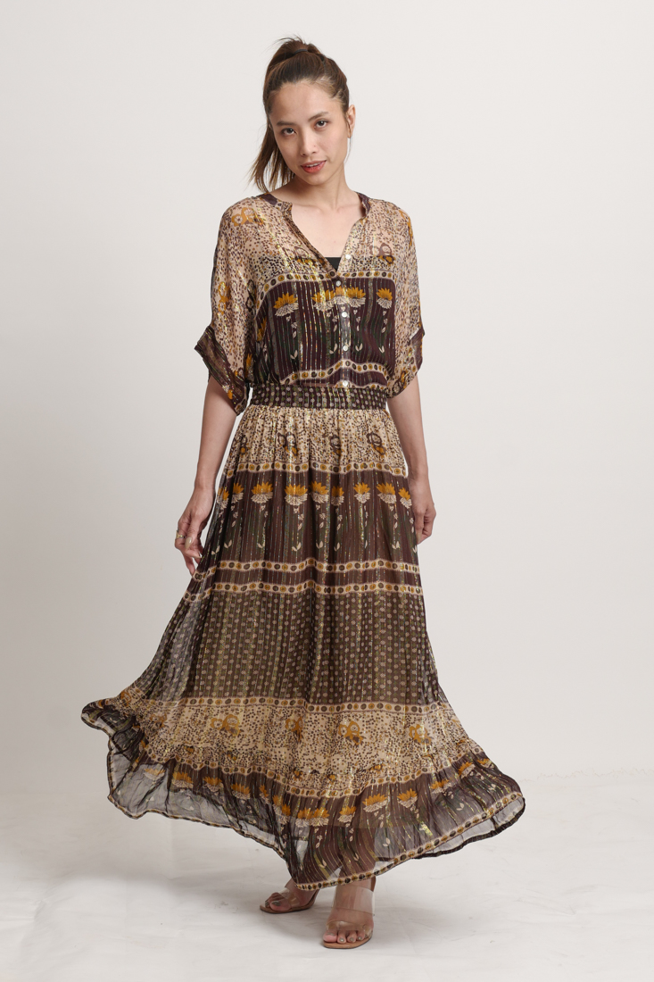 V2121. Set áo và chân váy tơ lụa ánh kim cao cấp mẫu mới nhất