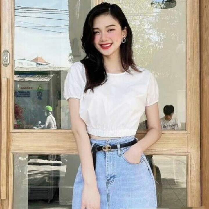 Áo croptop bo chun xinh xắn Đường may sắc nét, chỉnh chu từng chi tiết Kiểu dáng thời trang trẻ trung, hiện đại, phù hợp đi làm, đi chơi Chất liệu xô đũi co giãn