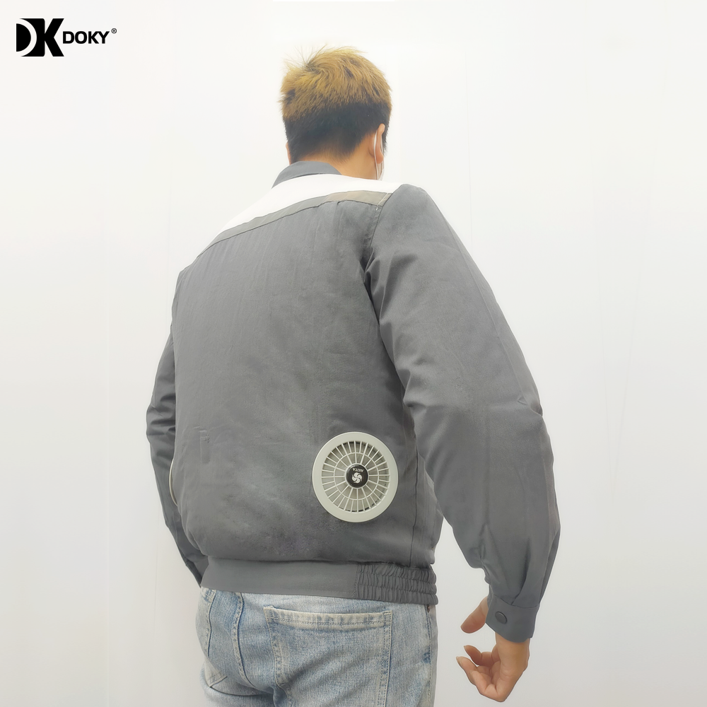 - Áo sử dụng 2 quạt thổi không khí từ ngoài làm mát, giảm nhiệt độ, điều hoà toàn bộ cơ thể.