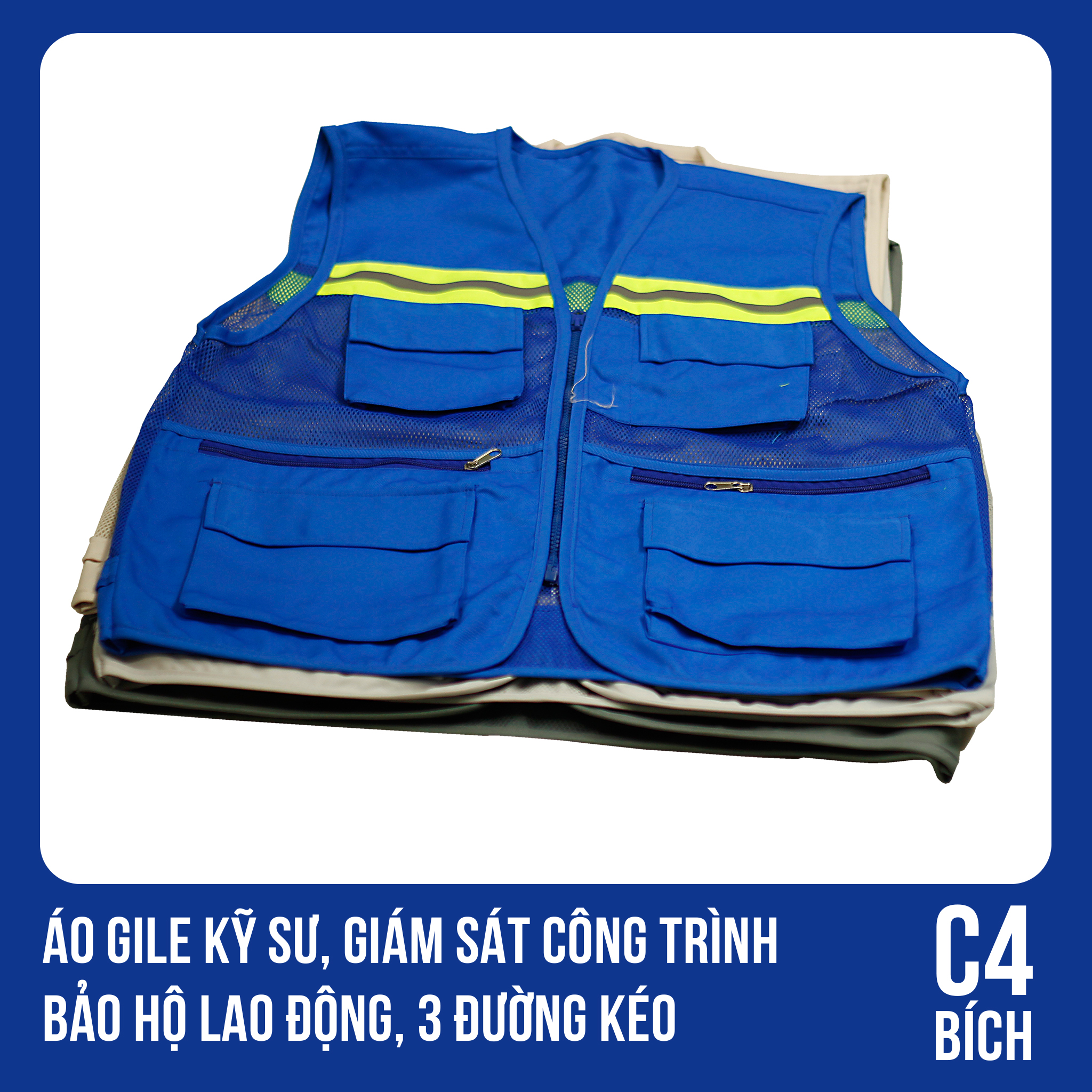 ✨Áo Gile Kỹ Sư, Giám Sát Công Trình, Bảo Hộ Lao Động, 3 Đường Kéo - Mã C4 (BÍCH)
