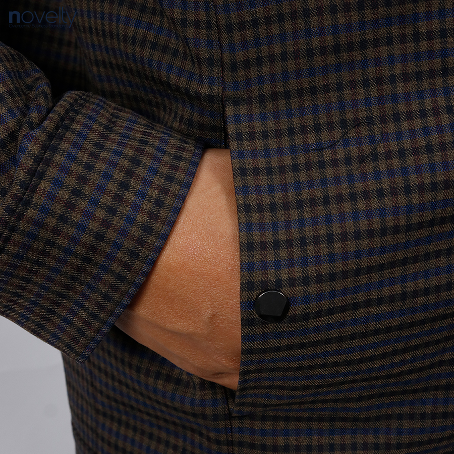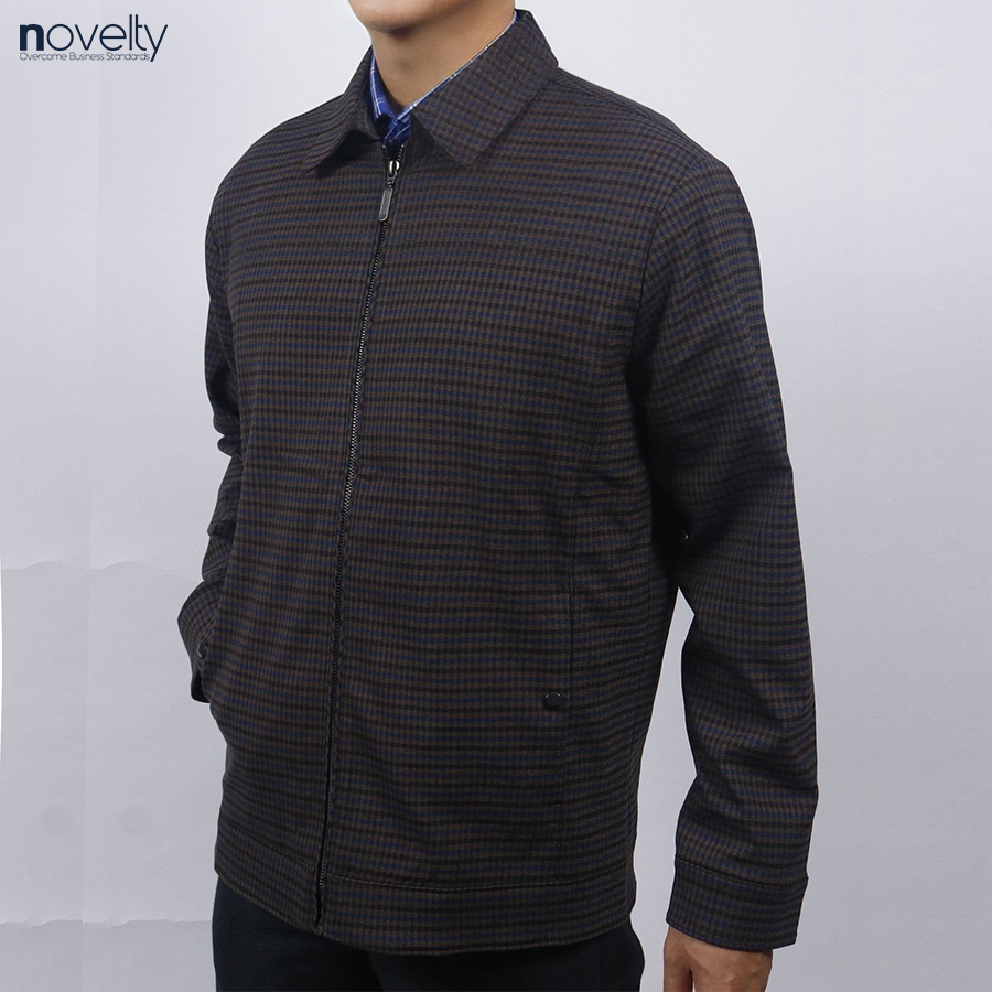 Áo Jacket nam 2 lớp cổ bẻ Novelty Casual caro lớn nâu đen NJKMCLMT3B2305312