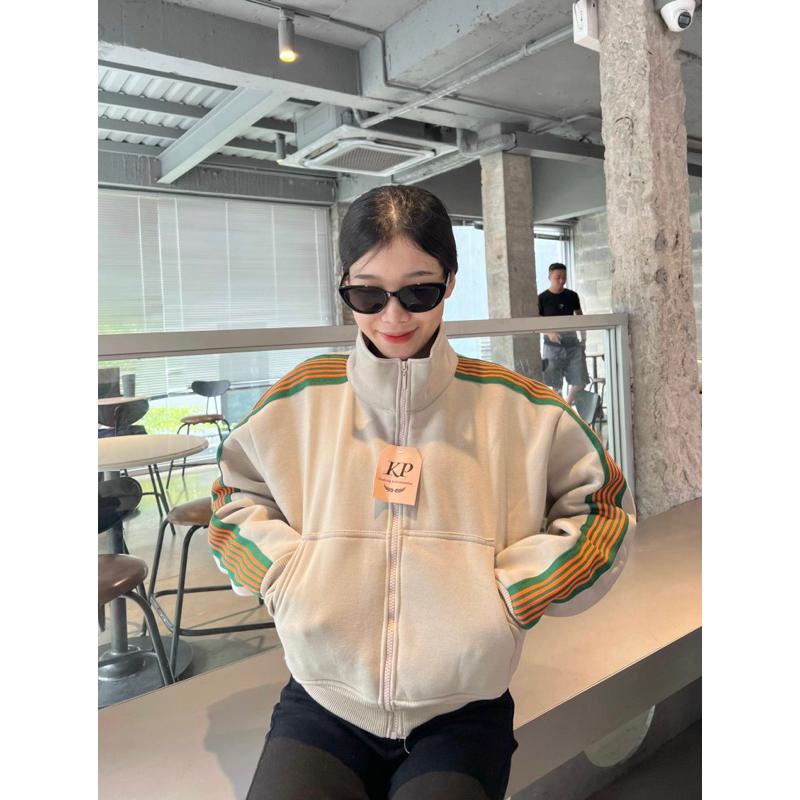 Áo khoác nữ nỉ chống nắng Viền Sọc Cổ Trụ Dáng Lửng là một lựa chọn thời trang cực hót cho các cô gái. Thiết kế cổ trụ và viền sọc tinh tế, sản phẩm